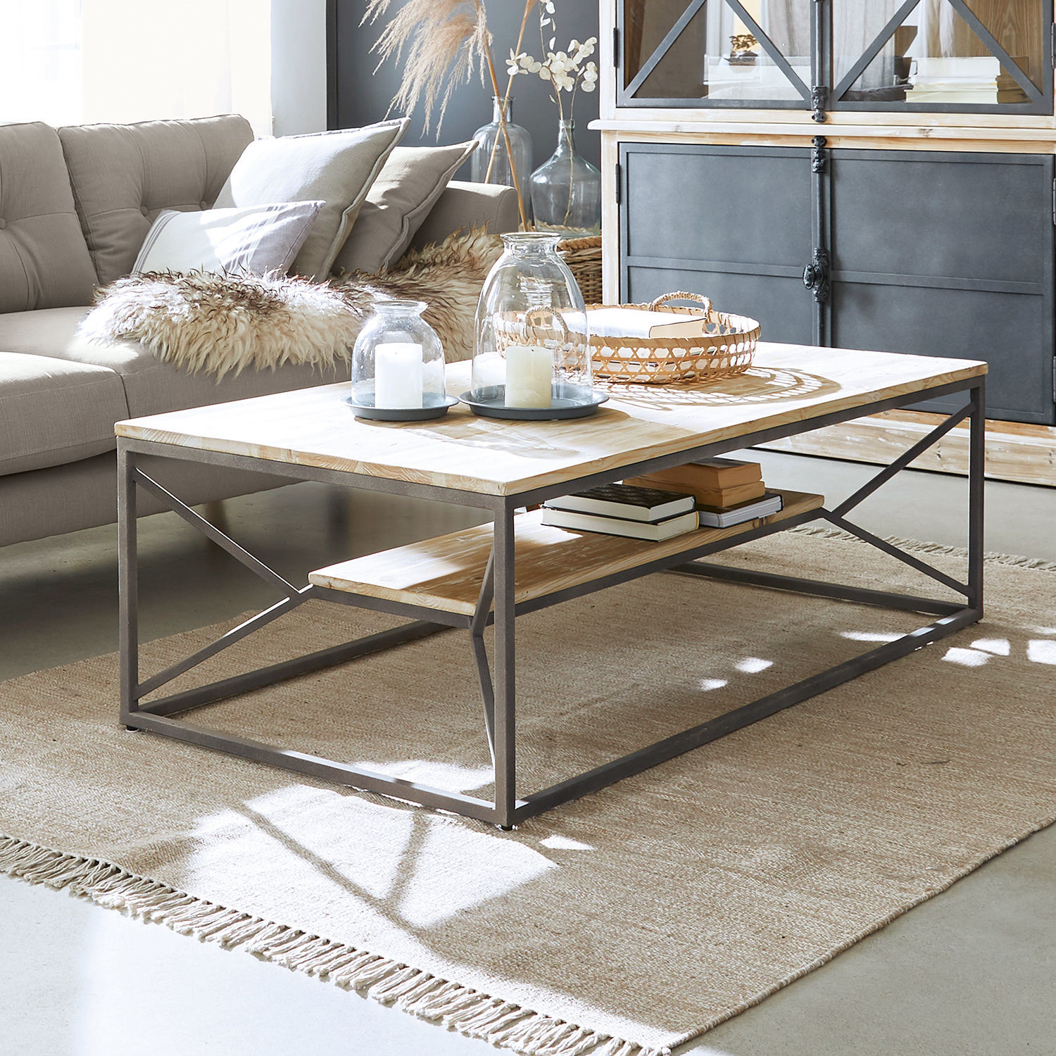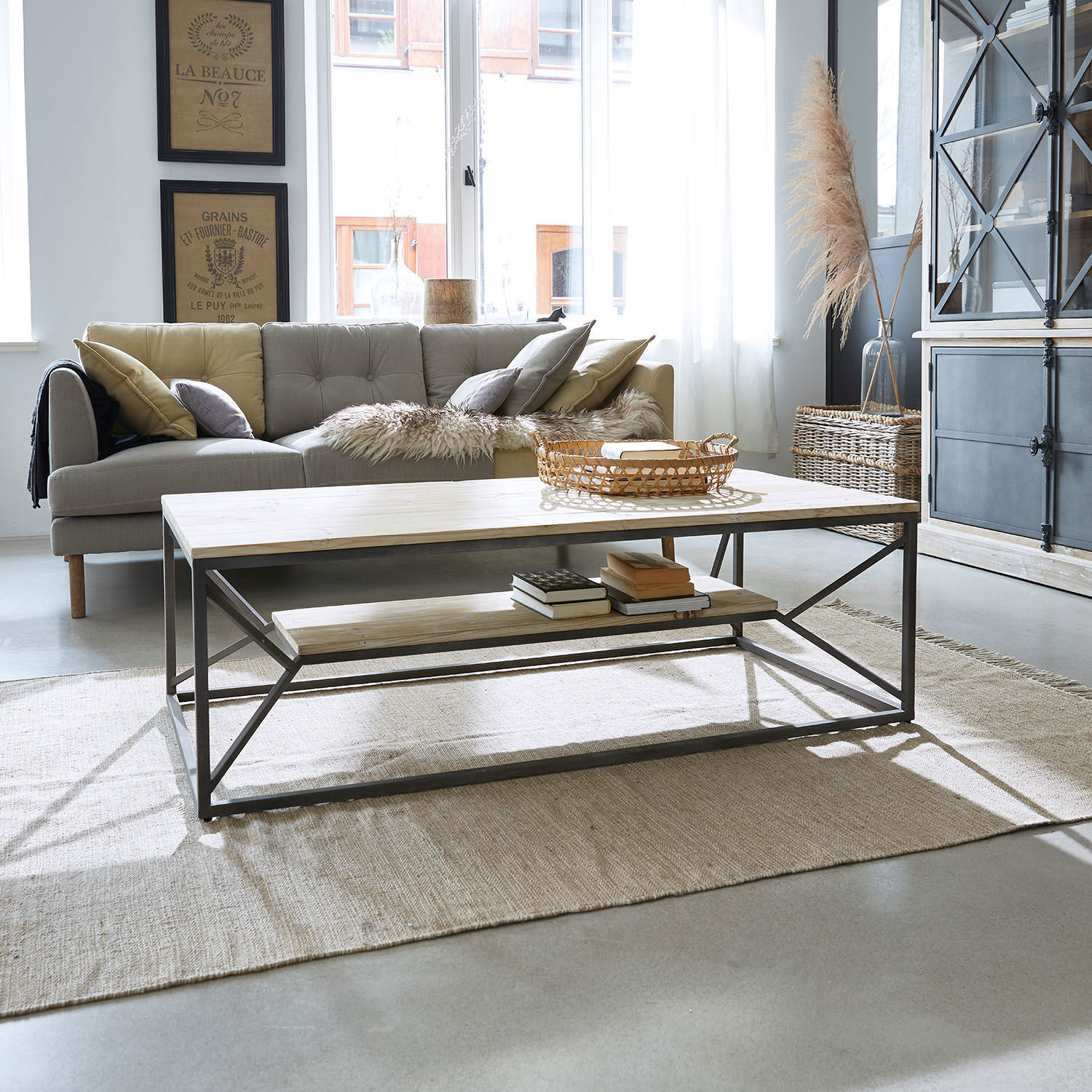 Ist es nicht faszinierend, wie gut das Naturmaterial Holz mit coolem Eisen harmoniert? Bei beiden handelt es sich allerdings um Materialien, die uns Menschen – mal solo, mal in Kombination – schon seit Jahrtausenden im Alltag begleiten. Bis sie jetzt sogar den gehobenen Interieur-Bereich für sich erobern konnten. Mit diesem Couchtisch können wir Ihnen ein Wohn-Accessoire vorstellen, dem es auf verblüffend einfache Weise gelingt, moderne Ästhetik mit rustikalem Charme zu verbinden. Das schlanke, schlicht geformte Gestell aus Eisen erinnert an einige Bauhaus-Klassiker, die Funktionalität und moderne Formensprache perfekt zu verbinden wussten. Für die rustikale Note ist das Naturmaterial Holz zuständig. Aus gutem Grund wählte der Designer nicht frisch geschlagenes, sondern wiederaufbereitetes Holz, das über eine besonders ausdrucksstarke Maserung verfügt, die durch ein dezentes White-Washed-Finish noch betont wird. Außerdem punktet wiederaufbereitetes Holz auch auf der Dimension Nachhaltigkeit, womit der Couchtisch perfekt in ein modern interpretiertes Landhaus-Ambiente passt.
