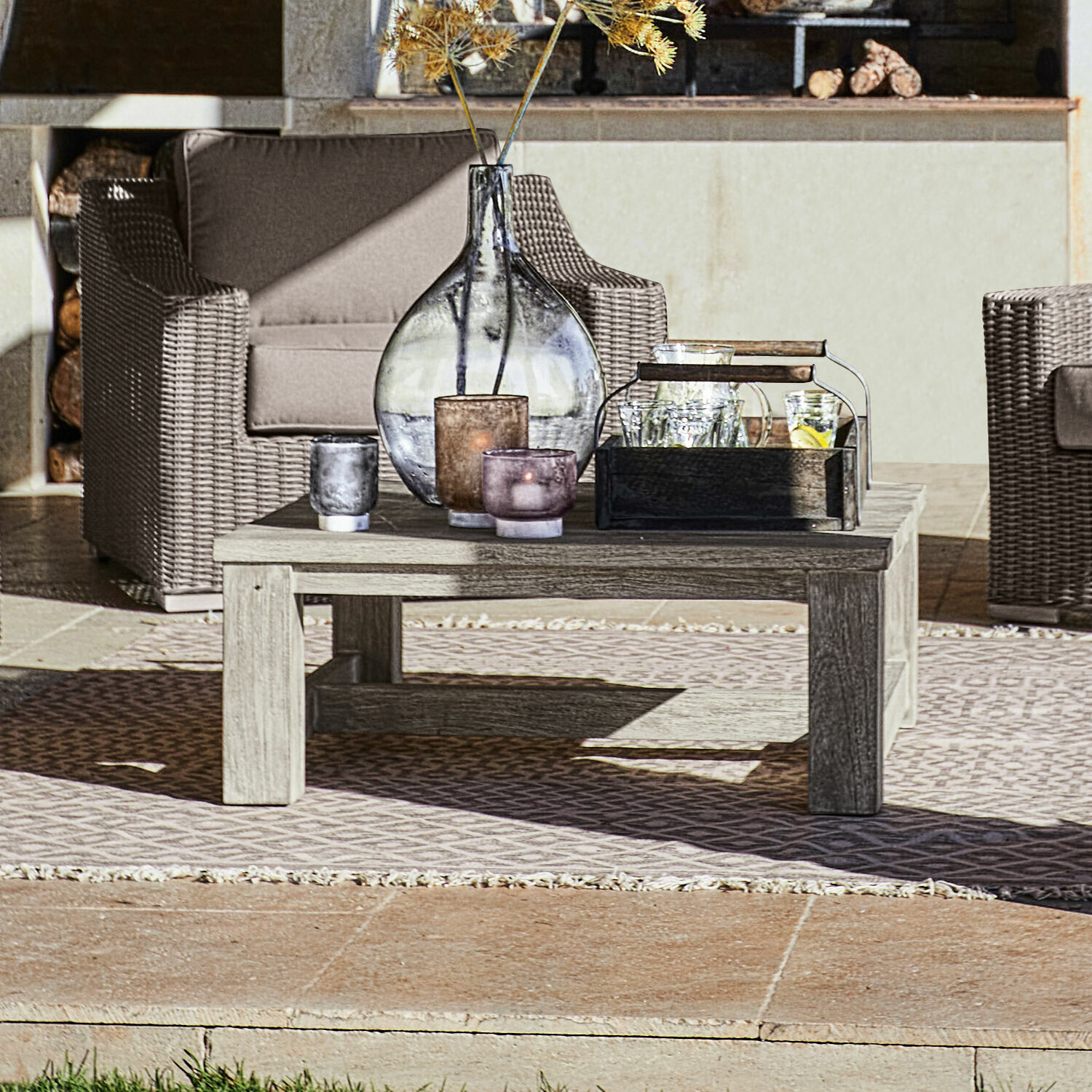 Was diesen großzügig dimensionierten Couchtisch so besonders macht, ist nicht nur seine attraktive Optik, sondern auch seine Beschaffenheit. Er ist aus dem Holz der Akazie gefertigt, welches eine bezaubernde Maserung aufweist und in Sachen Festigkeit und Härte selbst Teakholz hinter sich lässt. Es ist prädestiniert für den Outdoor-Bereich. Wind und Wetter können diesem Tisch also wenig anhaben und selbst Schädlinge oder Pilze haben keine Chance. Das klare, geradlinige Design spricht ebenfalls für dieses hochwertige Schmuckstück. Die Tischplatte weist zudem eine hübsche Plankenoptik auf, die einen maritimen Charakter hinein bringt. Zieren Sie damit Ihre Terrasse und genießen Sie gemütliche Stunden an der frischen Luft. Natürlich lässt sich der Tisch auch im Innenbereich vor Ihre Couch stellen. Auch dort bringt er einen tollen maritimen Charme in Ihr Zuhause.