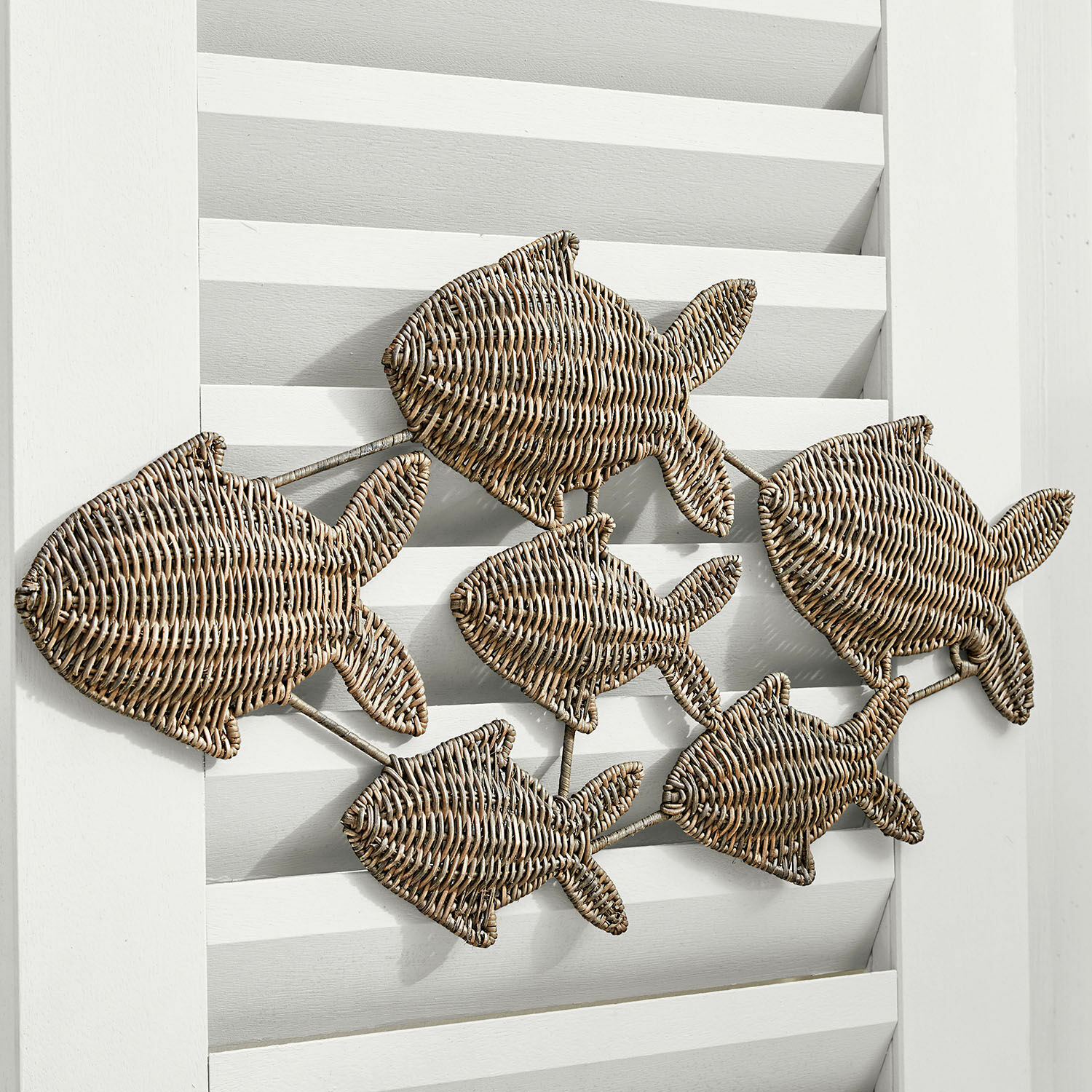 Träumen Sie sich an den Strand und genießen Sie das Gefühl von Sonne, Sand und Meer – hierbei ist dieses hochwertige und sehr freundliche Accessoire ein wunderbarer Begleiter. Es zeigt einen stilisierten Fischschwarm, der durch ein feines Eisengestell auf der Rückseite zusammengehalten wird. Das schicke Accessoire besteht aus geflochtenem Rattan und hat eine naturnahe Anmutung. Sie können an der Wand befestigen oder angelehnt aufstellen. Hierbei sind Sie ganz frei in der Dekoration. So oder so, jeder Raum freut sich über einen Hauch Urlaubs-Flair, und dieses attraktive Design passt sehr gut zum Landhaus-Stil.