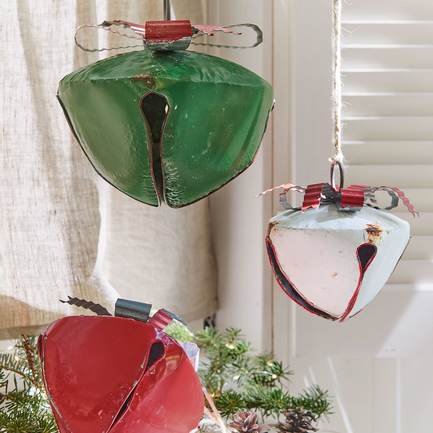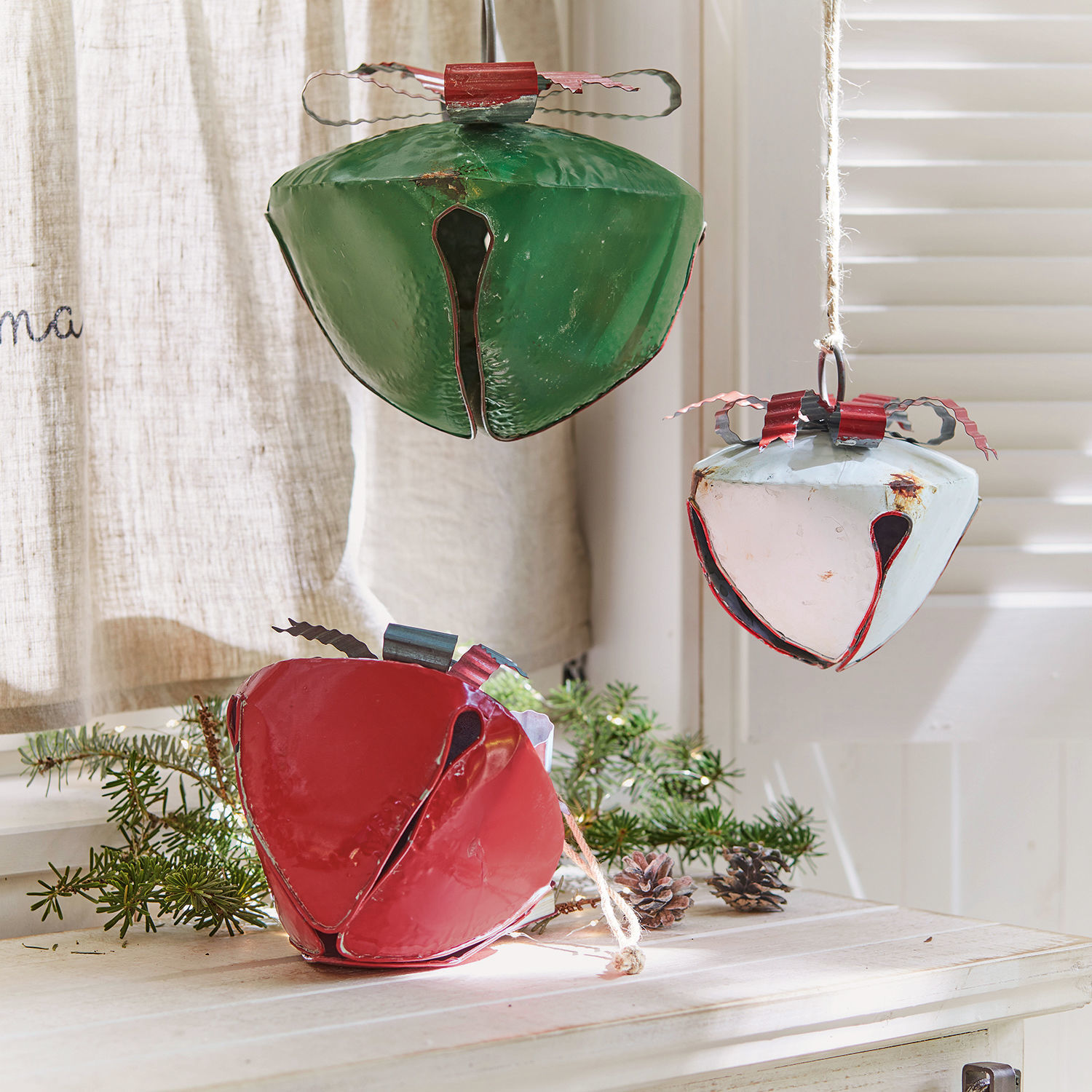Läuten Sie die Feiertage mit diesem Set auf besonders festliche Weise ein. Das oxidierte Eisen verleiht den Glocken einen rustikalen Charme, der absolut authentisch wirkt. Man könnte wirklich meinen, dass dieses wunderschöne Trio von Generation zu Generation weitergegeben wurde. Die drei Glocken unterscheiden sich in Größe, Farbe und Form. Jedes Stück wird sorgfältig in Handarbeit bemalt und veredelt. Diese Liebe fürs Detail verleiht dem hochwertigen Set seinen Unikat-Charakter. Die kunstvoll gearbeiteten Schleifen krönen die bezaubernde Vintage-Ästhetik im wahrsten Sinne des Wortes. Dass jede Glocke gar lieblich läutet, sollte nicht unerwähnt bleiben.