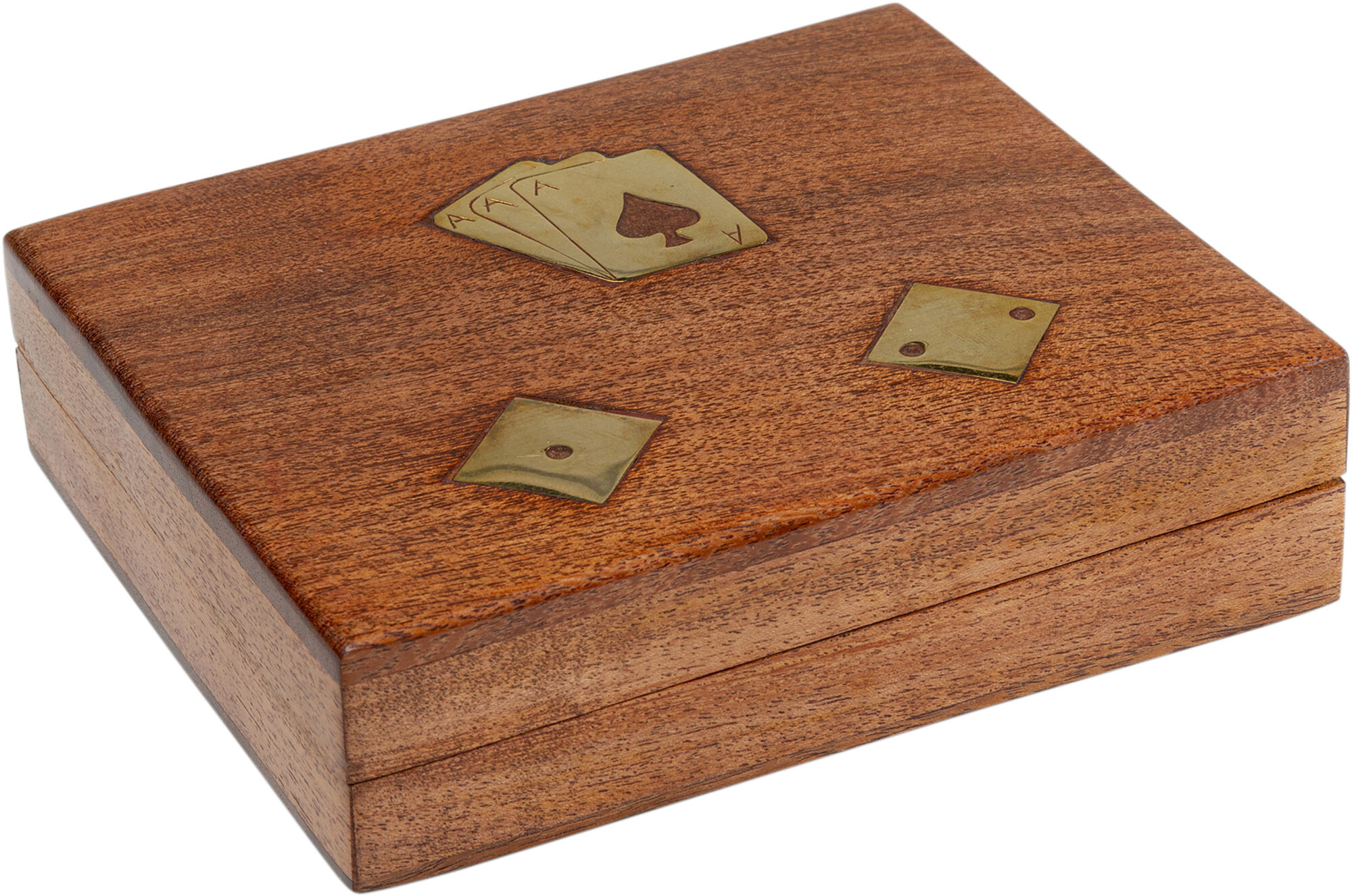 Material: (Verzierung: Messing gebürstet, Papier : Spielkarten, Akazie Massivholz gebeizt-lackiert)