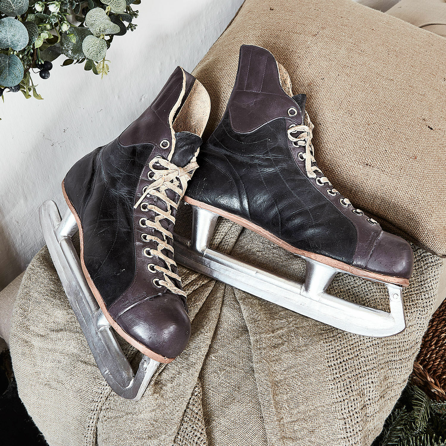 Es sind Bilder, die wir alle im Kopf haben – als Erinnerung, aus alten Gemälden oder historischen Erzählungen: Zugefrorene Weiher, auf denen Groß und Klein in dicken Winterjacken, Schals und Mützen mit ledernen Schlittschuhen über das Eis gleiten und mit den Kufen feine kleine Linien in die Oberfläche ziehen, während ringsherum der hohe Schnee die Landschaft weiß färbt. Diesen Traum können Sie in Ihren vier Wänden aufleben lassen. Denn diese naturnah nachgebildeten Deko-Objekte in Form schicker Schlittschuhe im Nostalgie-Look zaubern den Charme vergangener Zeiten in Ihr weihnachtliches Ambiente und werden Ihre Gäste ebenso verblüffen wie begeistern. Die Schnürsenkel, das Veloursleder im Inneren, die Kufen, das dezente benutzte Aussehen – das alles wurde sehr aufwendig und detailliert gestaltet. Die Schlittschuhe sind kaum von echten zu unterscheiden. Eine wundervolle und originelle Idee, Ihrem Zuhause brillante dekorative Akzente zu verleihen.