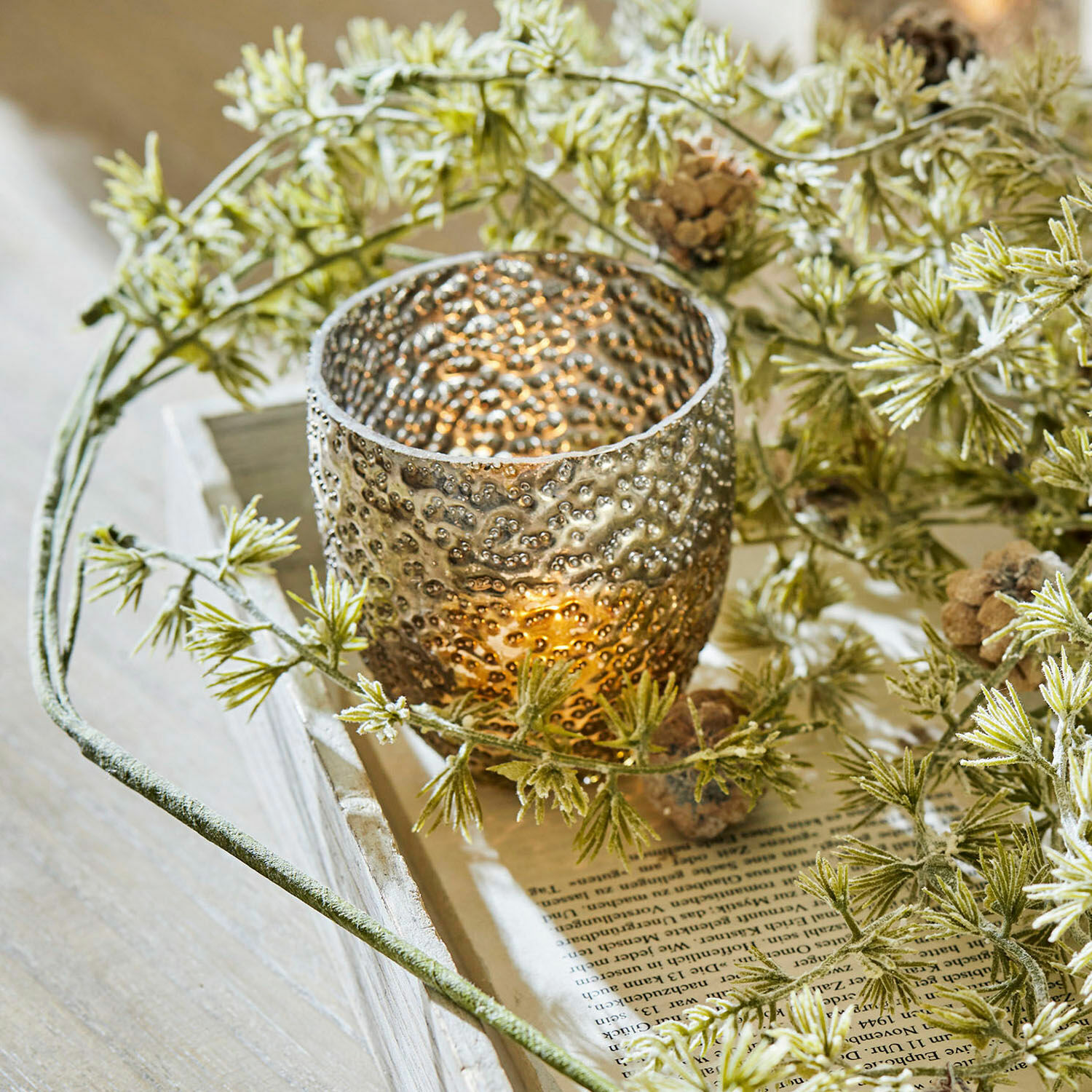 Unser immer grüner Deko-Zweig passt ideal zu Ihrem festlich geschmückten Zuhause zur Weihnachtszeit. Er besteht aus ganz natürlich wirkendem Material und echten Kiefernzapfen. Dazu ist er, passend zum Winter, dezent mit Kunstschnee bedeckt. Sie können ihn mit Deko-Objekten gestalten, wie Sie möchten. Er ziert hängend die Türe oder versprüht auf Tischen oder Kommoden seinen bezaubernden Charme. Kleine klingelnde Glöckchen, silberne, goldene oder rote Bändchen, Anhänger aus Holz oder allerlei andere feine Dekorationen machen sich auf den kunstvollen Zweigen prächtig. Und wenn Ihnen die Ideen ausgehen, holen Sie sich einen Ihrer Liebsten und schmücken Sie gemeinsam Ihre Wohnung und machen Sie Ihr schönes Zuhause noch ein wenig schöner.