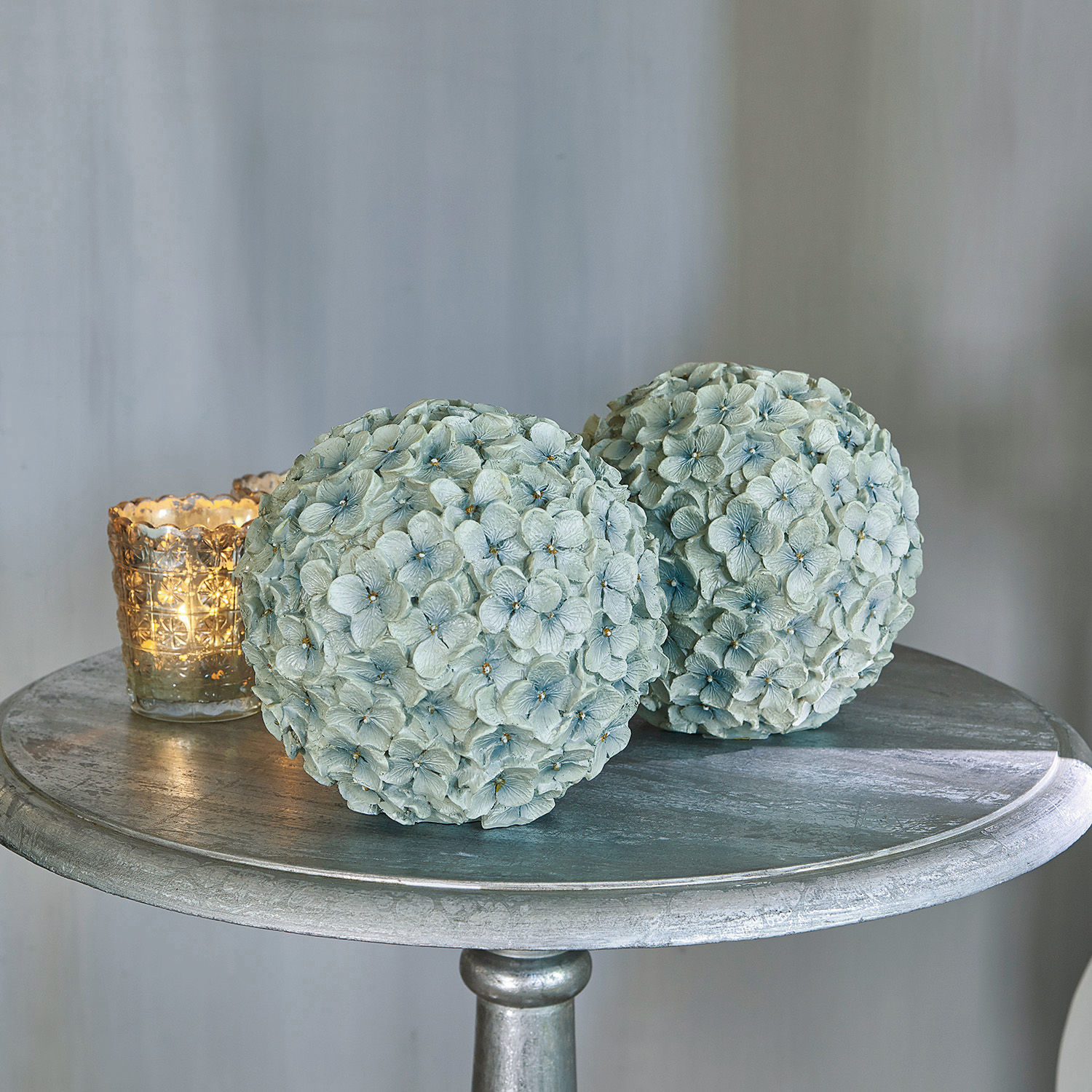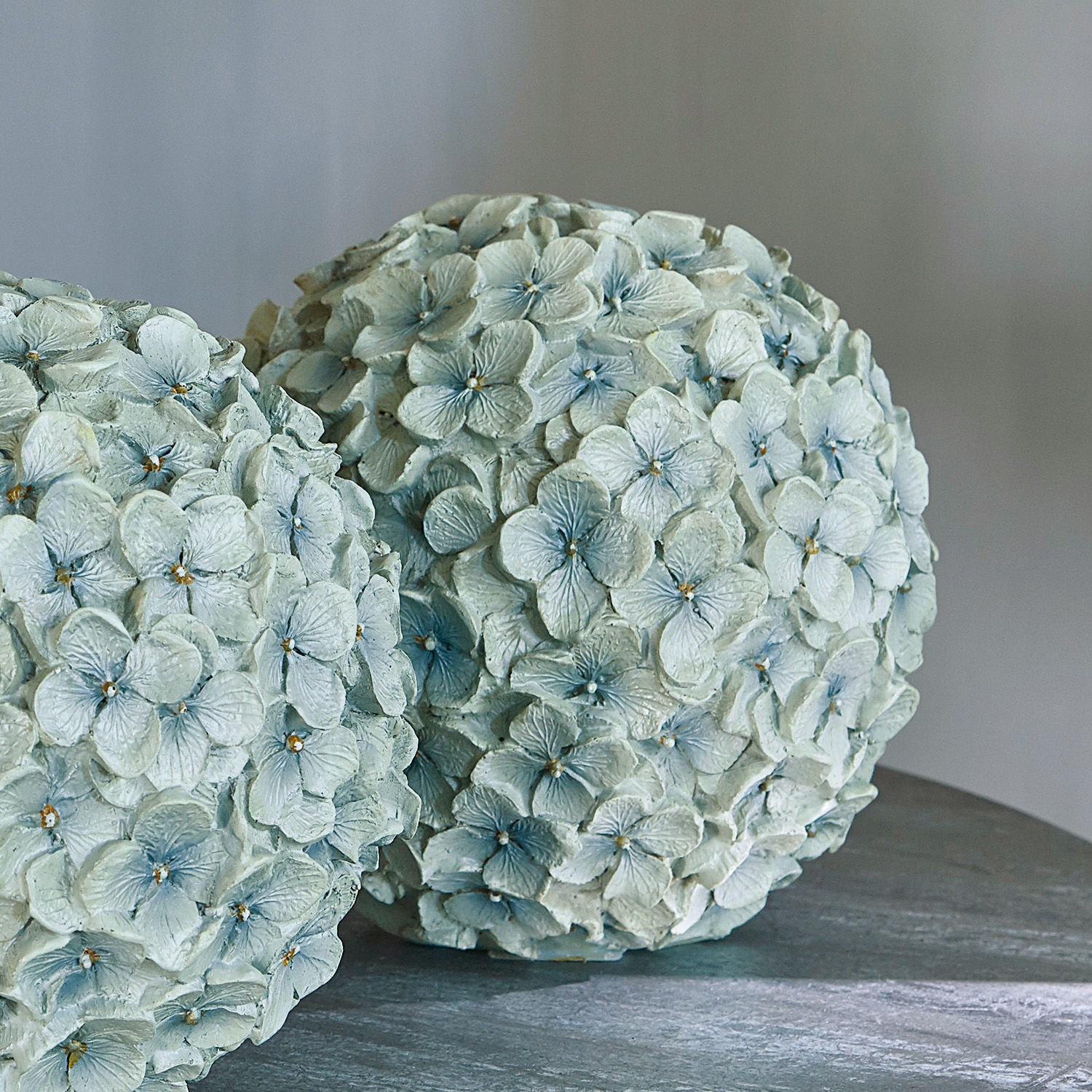 Mit diesem edlen Duo erhalten Sie zwei naturgetreue und sehr detailreich gearbeitete Deko-Blüten aus Polyresin. Es sind exakte Nachbildungen feiner Hortensien, die in Handarbeit bemalt sind. Freuen Sie sich mit dem wunderhübschen Doppel das ganze Jahr über auf eine unvergängliche Blütenpracht, welche niemals verwelkt. Die dezente Farbgebung gibt ihnen einen zeitlosen Charakter, der mit jedem Ambiente harmoniert. Arrangieren Sie sie beispielsweise auf einem hübschen Tablett oder als geschmackvollen Tischschmuck, vielleicht in Kombination mit Zweigen, Windlichtern oder Kerzen. So kreieren Sie ein elegantes Highlight mit dem Charme der Natur und adeln stilsicher jeden Raum.