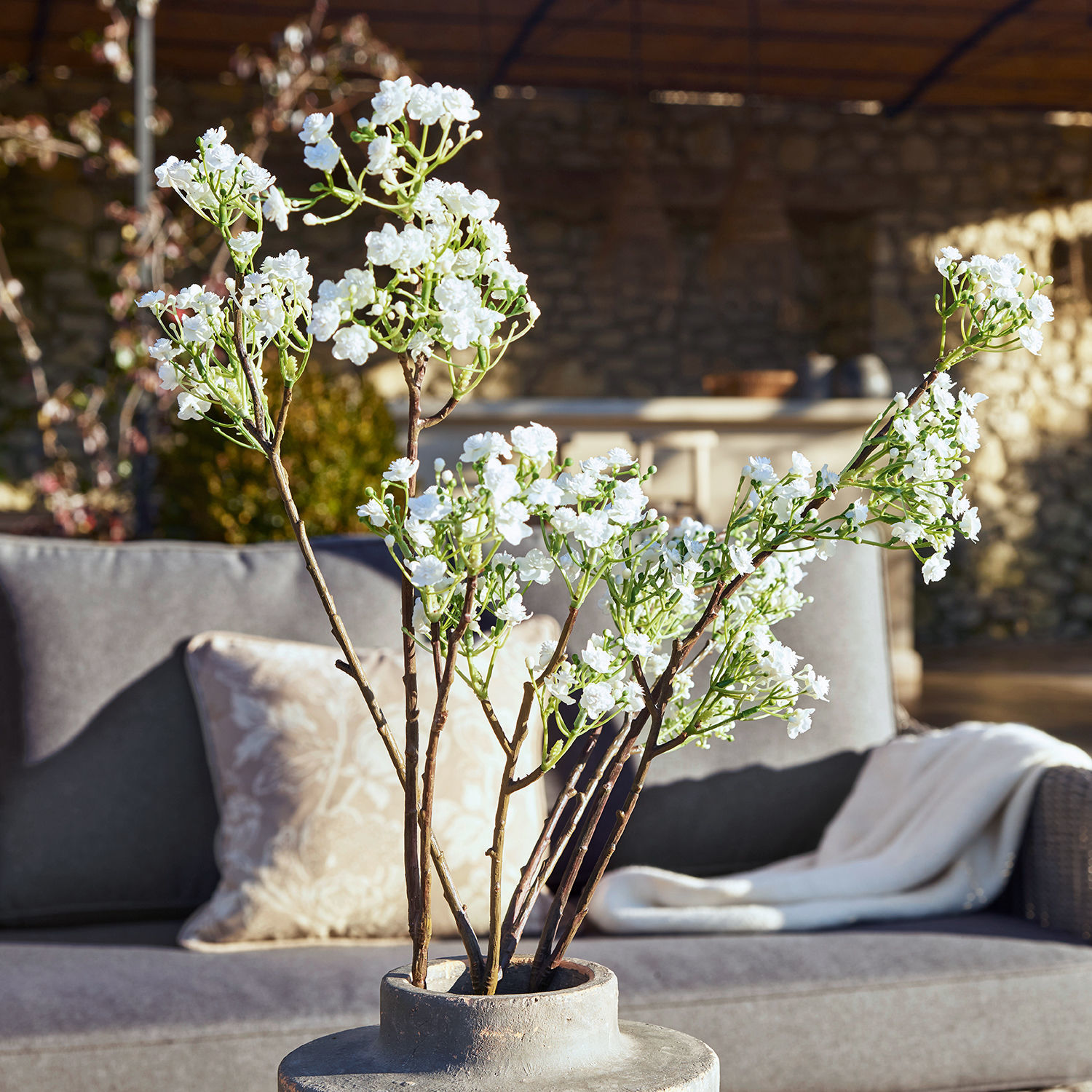 Eine lange Blütezeit ist das Geheimnis dieser hübschen Dekoblumen. Auf den ersten Blick wirken sie so naturgetreu wie frisch von einer Blumenwiese gepflückt. Erst beim genauen Hinsehen macht sich der Unterschied und damit die kunstvolle Handarbeit bemerkbar. Denn jedes einzelne Blatt wird aus Stoff ausgestanzt und per Hand aufwendig zu einer individuellen Blüte zusammengefügt. Auch die zartgrünen Stiele wirken eindrucksvoll natürlich. Sie sind nach unten mit flexiblem Draht ausgestattet und lassen sich so für jeden Dekowunsch perfekt gestalten. Schöner und gleichzeitig unkomplizierter kann sich ein Strauß von zarten Blüten nicht präsentieren. Einzeln in eine hohe Vase gestellt können Sie damit wunderbare Tischdekorationen zaubern, auch zum festlichen Anlass. Auch als 4er Set sind sie ein traumhafter Hingucker und entfalten in Kombination mit rustikalen Tonvasen einen romantischen Charme, der in jedes Landhaus- oder Vintage-Ambiente passt. Selbstverständlich lassen sich die Dekoblumen auch mit Elementen aus der Natur wie beispielsweise Beerenzweigen oder Gräsern zu spannenden Arrangements kreieren.