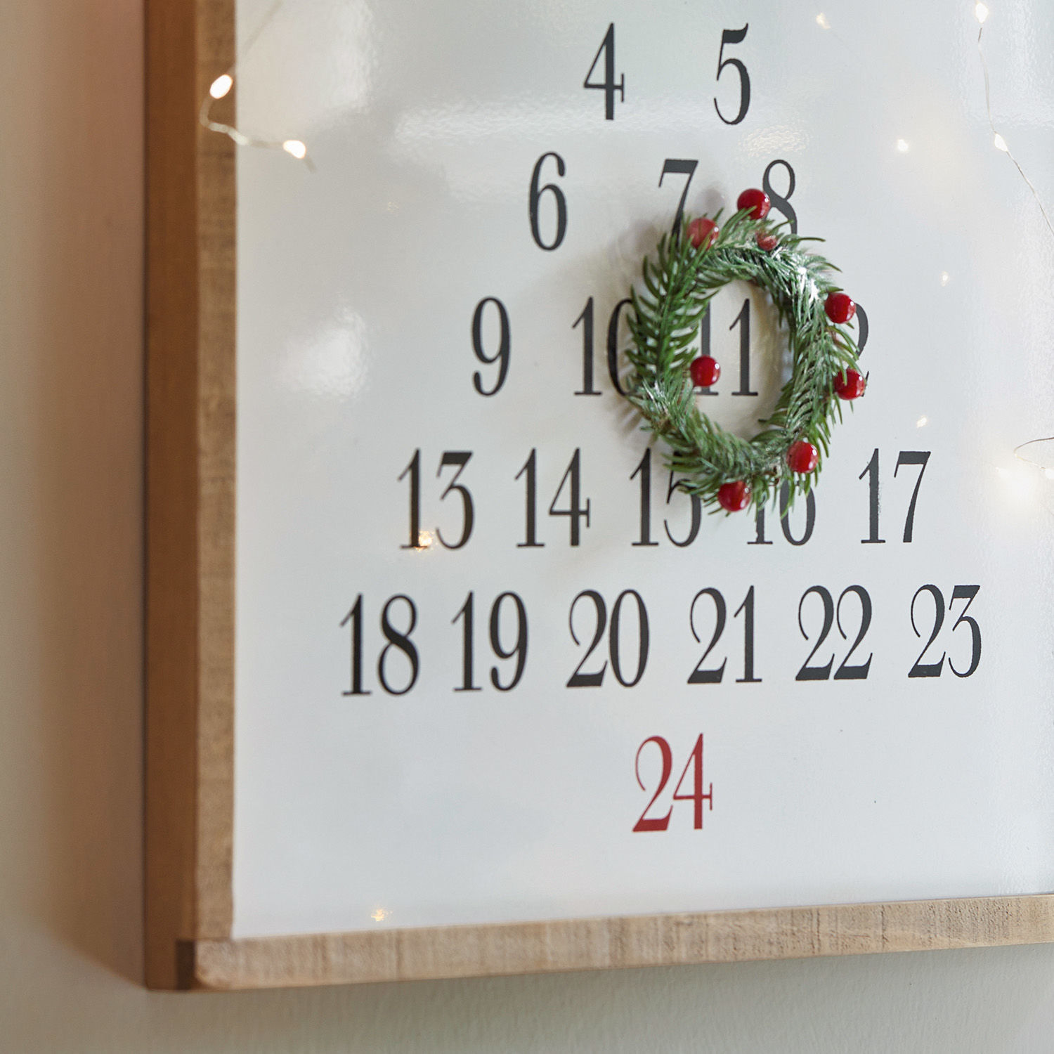 Wenn Nostalgie, weihnachtlicher Charme, Witz und Kreativität aufeinandertreffen, dann entsteht Magie. So wie bei diesem stilvollen Deko-Board. Hängen Sie es im Flur auf, sodass Siedie übrigen Tage zum Fest immer im Blick haben. Oder verleihen Sie dem Wohnzimmer oder der Küche einen festlichen Akzent. Ein fein gemaserter Holzrahmen umgibt das hochwertige Eisenschild, das ebenso hübsch wie funktionell ist. Es zeigt Ihnen die Tage bis Weihnachten an, wobei ein kranzförmiger Magnet als Markierung dient. Eine wirklich tolle Idee, die auch Jung und Alt gleichermaßen begeistert. Das authentische Vintage-Design ist einfach nur schön und verkörpert unsere Vorfreude auf Heiligabend auf einzigartige Art und Weise.