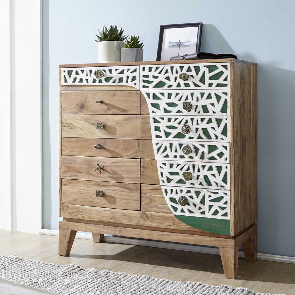 – Kommode Weiß, Grün und Akaziefarben – Flurkommode Akazie Massivholz – Apothekerkommode Modern – Schubladenkommode Breite: 90 – Schlafzimmer kommode Höhe: 100 – Küchenkommode Tiefe: 40 – Kommode holz Mit vielen Schubladen und mit Holzauszug – Wäschekommode Ohne Beleuchtung – Kommode massivholz Fertig montierte Anlieferung (eventuell müssen noch Kleinteile angebracht werden) – Schubkastenkommode 4-Fuß Gestell aus Massivholz – Wohnzimmer kommode Massivholz Oberfläche und Lackiert – Kommode massiv Metallgriffen – Schlafzimmerkommode Rechteckige FormInformationen zur Lieferung:Die Zustellung dieses Produktes erfolgt per Spedition. Sie werden vor der Auslieferung durch die ausliefernde Spedition kontaktiert.Terminvereinbarung: Sie werden frühzeitig (ein paar Tage im Voraus) durch die ausliefernde Spedition kontaktiert und Ihnen der Auslieferzeitpunkt mitgeteilt. Die Kontaktaufnahme erfolgt per Telefon. Bei telefonischer Nichterreichbarkeit werden Sie per Postkarte über das Auslieferdatum informiert.Die Lieferung erfolgt aus Kostengründen Frei Bordsteinkante (bis zur ersten verschlossenen Tür). Für den weiteren Transport der Ware sind Sie eigenverantwortlich.Die Auslieferung erfolgt von Montags bis Freitags. Eine Zustellung an Sonn- und Feiertagen ist nicht möglich.