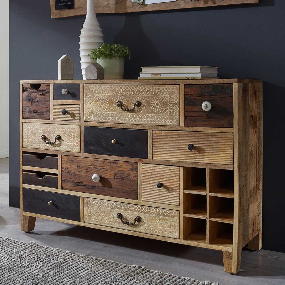 – Kommode Mehrfarbig und Mangobaum – Flurkommode Mangobaum Massivholz – Apothekerkommode Modern – Schubladenkommode Breite: 114 – Schlafzimmer kommode Höhe: 81 – Küchenkommode Tiefe: 40 – Kommode holz Mit vielen Schubladen und mit Holzauszug – Kommode massivholz Ausergewöhnliches Design – Wäschekommode Ohne Beleuchtung – Schubkastenkommode Fertig montierte Anlieferung (eventuell müssen noch Kleinteile angebracht werden) – Wohnzimmer kommode 4-Fuß Gestell aus Massivholz – Kommode massiv Massivholz Oberfläche, Naturbelassen, Lackiert, geschnitzt und handgearbeitet – Schlafzimmerkommode Metallgriffen – Kommode echtholz Rechteckige Form – Echtholz kommode Griff Form: Knopfgriff, Bügelgriff und GrifflochInformationen zur Lieferung:Die Zustellung dieses Produktes erfolgt per Spedition. Sie werden vor der Auslieferung durch die ausliefernde Spedition kontaktiert.Terminvereinbarung: Sie werden frühzeitig (ein paar Tage im Voraus) durch die ausliefernde Spedition kontaktiert und Ihnen der Auslieferzeitpunkt mitgeteilt. Die Kontaktaufnahme erfolgt per Telefon. Bei telefonischer Nichterreichbarkeit werden Sie per Postkarte über das Auslieferdatum informiert.Die Lieferung erfolgt aus Kostengründen Frei Bordsteinkante (bis zur ersten verschlossenen Tür). Für den weiteren Transport der Ware sind Sie eigenverantwortlich.Die Auslieferung erfolgt von Montags bis Freitags. Eine Zustellung an Sonn- und Feiertagen ist nicht möglich.