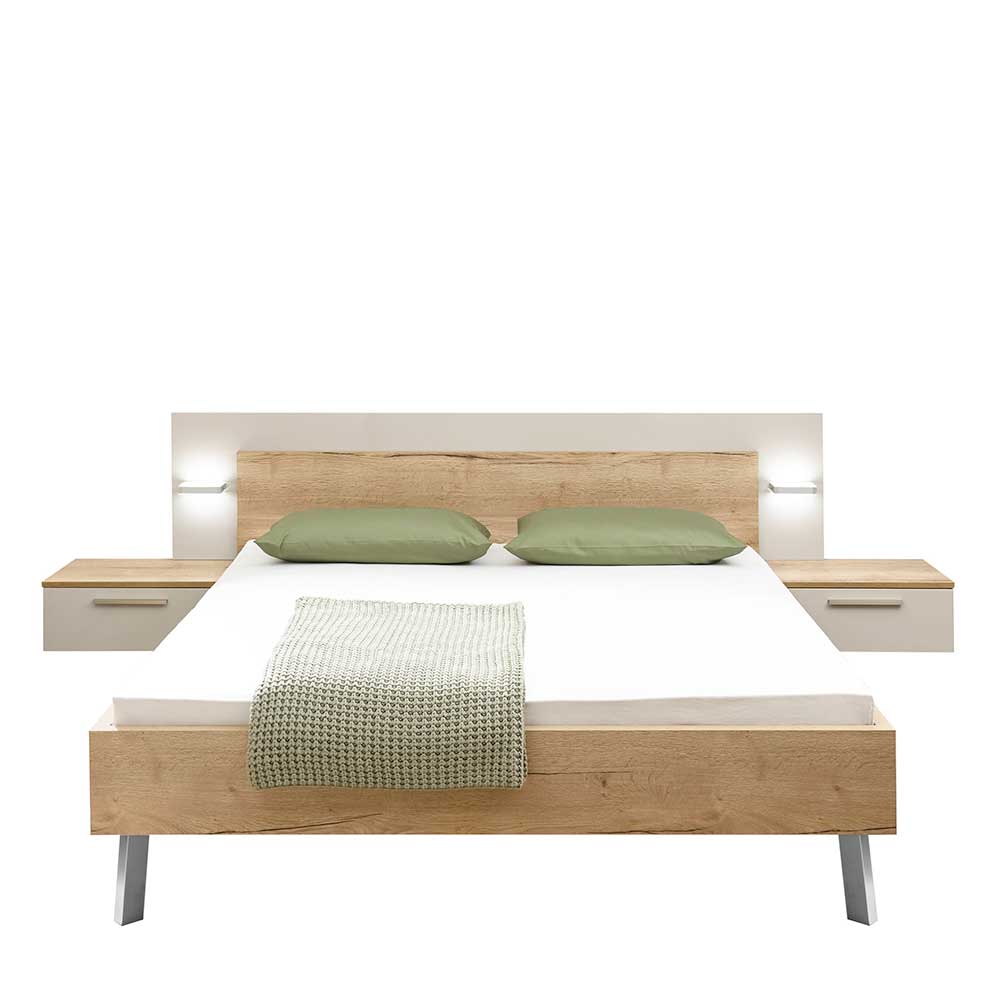 – Bettgestell Eichefarben und hell Grau – Doppelbett Spanplatte – Bett Modern – Kingsize bett Höhe: 100 – Ehebett Tiefe: 209 – Französisches bett Bettseitenhöhe [Einstieg]: 48 – Bettrahmen Inkl. 2 Nachtkommoden – Hohes bett Modernem Hochglanz – Großes bett Mehrteilig: 3-teilig – Komfortbett LED Beleuchtung – Doppel bett Zerlegt, zum leichten Selbstaufbau (Montageanleitung liegt bei) – Doppelbettgestell Deutsche Produktion – Breites bett Lieferung ohne Matratze – Doppeltbett Lieferung ohne Lattenrost – 2 personen bett Vertiefung für Lattenrahmen (cm): 18 – Bett für 2 personen Fußende-Höhe (cm): 48 – Schlafzimmerbett Kopfende-Höhe (cm): 100 – Bett für 2 Inklusive Stütz-Traverse: Mittelsteg (für 2 Lattenroste geeignet) – Kingsize-bett Bodenabstand zum Seitenteil (cm): 23 – Schlafbett Lackiert – Franzoesisches bett Rechteckige Form – Energieeffizienzklasse: LED Varianten – 001: Breite: 289 / Liegemaße: 160×200 – 002: Breite: 309 / Liegemaße: 180×200 – 003: Breite: 329 / Liegemaße: 200×200