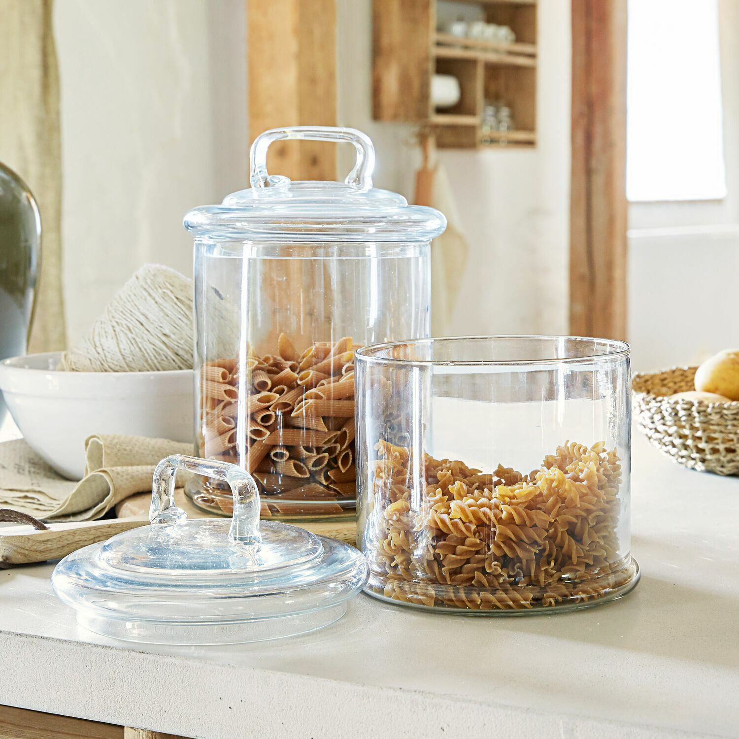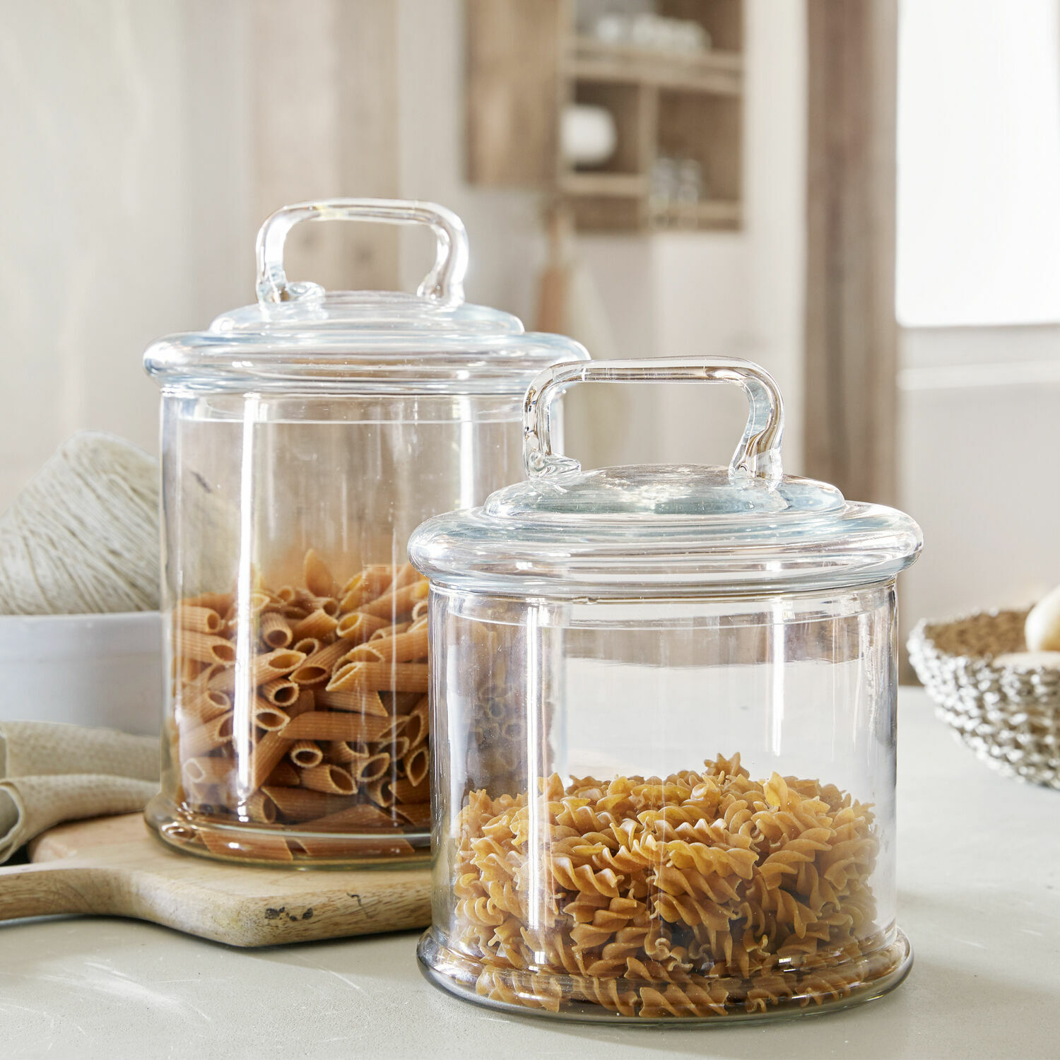 Natürlich handelt es sich bei einer Glasdose eher um ein funktionelles Produkt, aber das bedeutet nicht, dass es nicht auch hübsch aussehen darf. So punktet etwa dieses Set mit einem Design, das von schlichter Eleganz geprägt ist und geradezu unprätentiös wirkt. Die breite Öffnung erleichtert die Entnahme und macht sogar die Aufbewahrung von großen Cookies zum Kinderspiel. Die Glasdeckel besitzen große Griffe, sodass sie schnell angehoben werden können. Egal ob Sie Kekse, Mehl, Zucker oder Dekoartikel wie Lichterketten oder Tannanzapfen einfüllen – diese Glasdosen sind wirklich ein sehr stilvolles Deko-HIghlight. Kurz: Dieses Set ist viel zu schön, um es hinter einer Schranktür aufzubewahren!