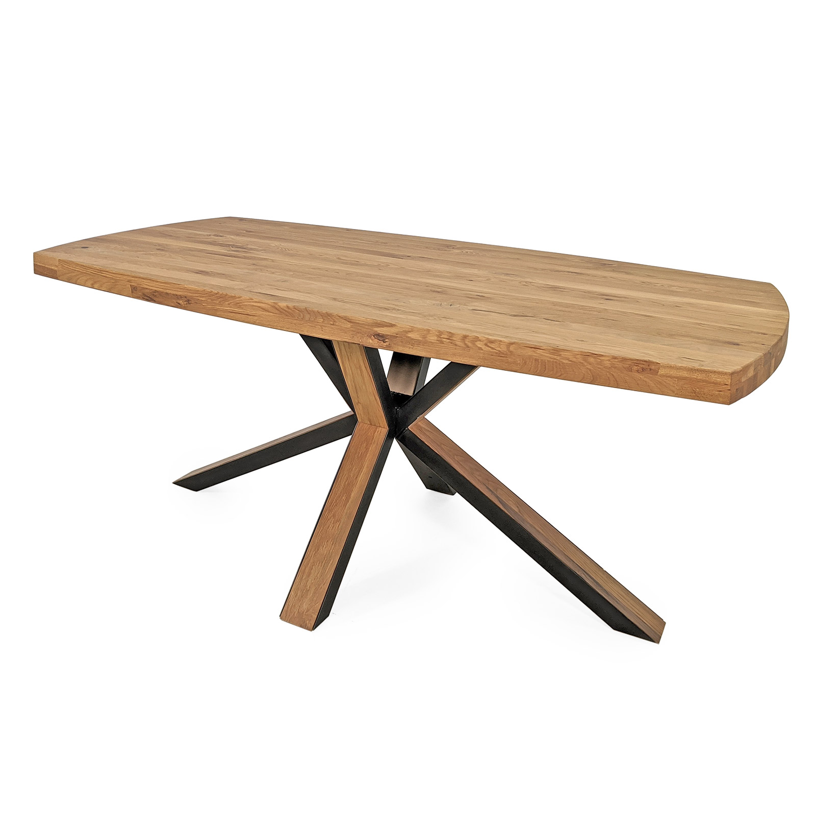 Esstisch in Bootsform – Eiche massiv / Metall