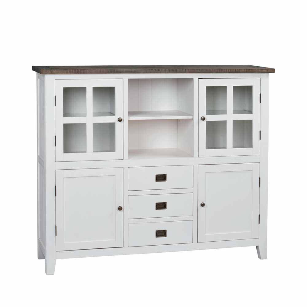 – Highboard Weiß und Braun – Wohnzimmerschrank Kiefer Massivholz – Anrichte Landhausstil – Kommode Breite: 155 – Esszimmerschrank Höhe: 132 – Wohnzimmer schrank Tiefe: 44 – Highbord Mit drei Schubladen und mit Holzauszug – Wohnzimmer kommode Schrank-Tür: mit Drehtüren – Anrichte buffet 4-türig, Innenaufteilung: mit Einlegeböden – Esszimmer kommode Ohne Beleuchtung – Wohnzimmer highboard Fertig montierte Anlieferung (eventuell müssen noch Kleinteile angebracht werden) – Esszimmer highboard 4-Fuß Gestell aus Massivholz – Wohnzimmerkommode Massivholz Oberfläche und Lackiert – Anrichte esszimmer Metallgriffen – Esszimmerkommode Rechteckige Form
