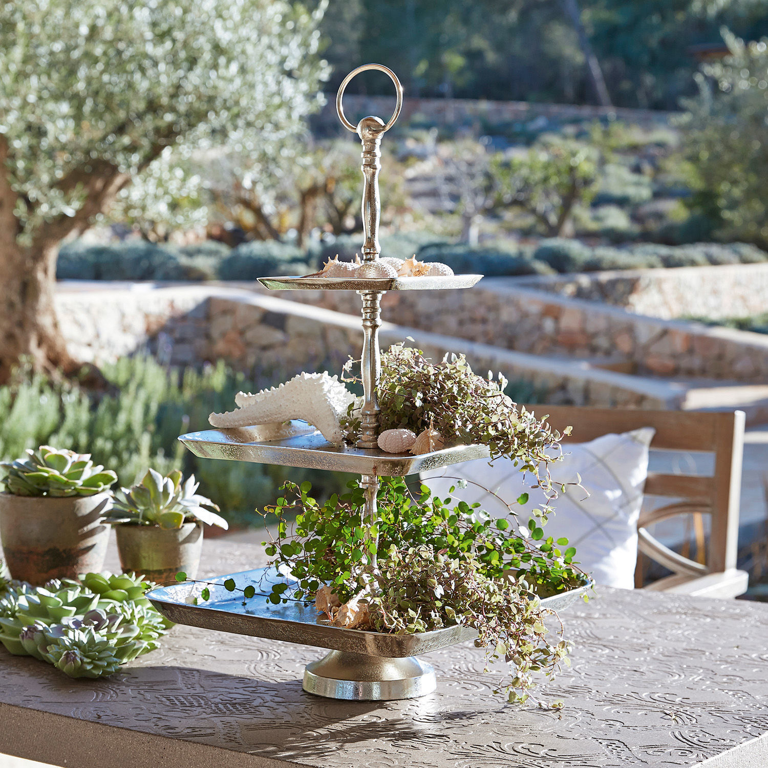 Aluminiumguss mit charmanter Oberflächenstruktur. Eine wunderbare Metall-Etagere, die aufgrund ihrer Antiksilber-Veredelung durchaus Unikatcharakter hat. Die matt […]
