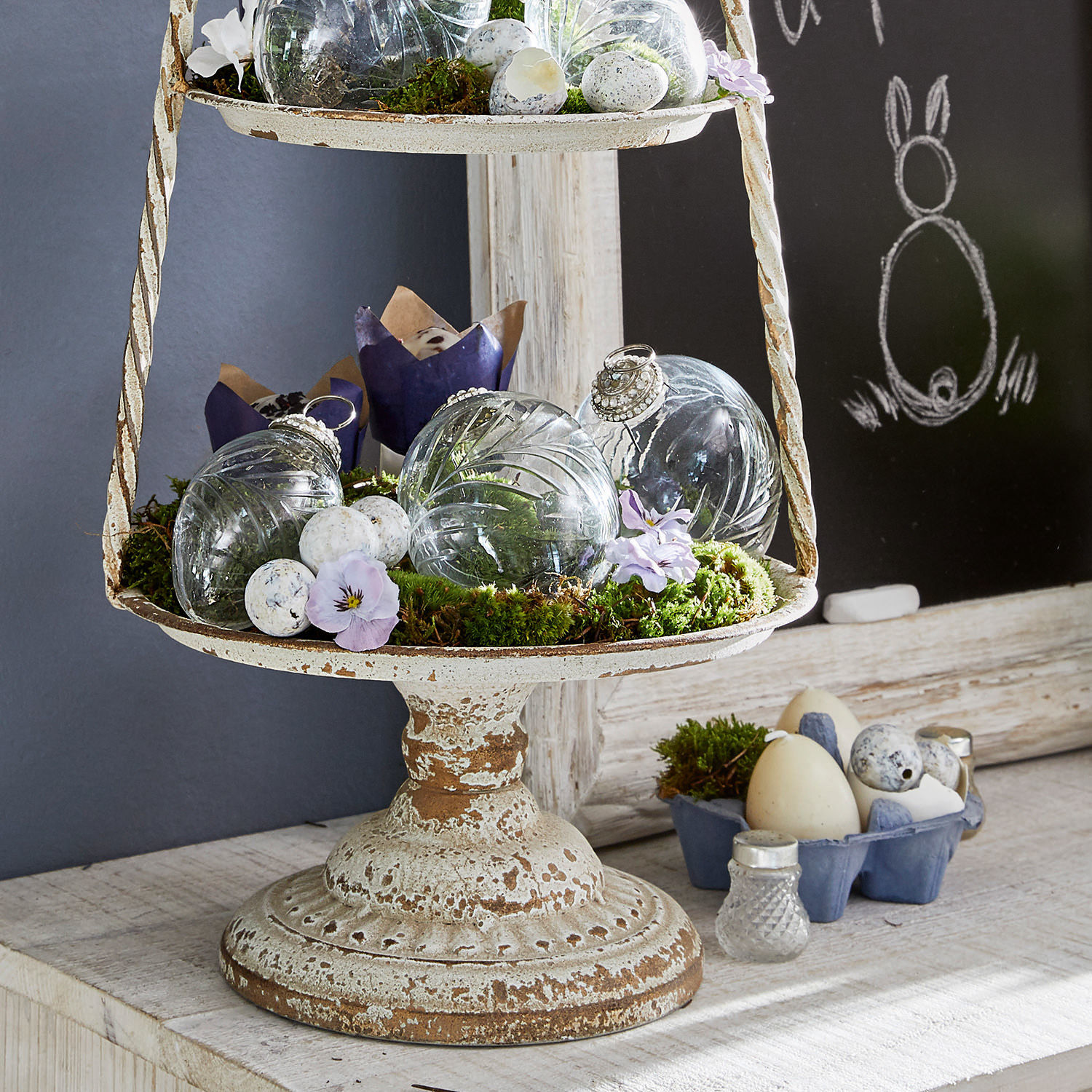 Etageren sind ideale Deko-Künstler, um Obst, feines Gebäck oder kleine kulinarische Köstlichkeiten gebührend in Szene zu setzen. Dabei schenken Formgebung und Material jedem Stück eine charakteristische Aura. Bei dieser Etagere ist es das Zusammenspiel von eleganter Schlichtheit und robustem Eisen, das eine ganz eigene Geschichte erzählt. Denn der Antik-Look mit kleinen Abnutzungsspuren kennzeichnet einen außergewöhnlichen Look und lässt vergangene Zeiten wieder aufleben. Die drei runden Platten sind unterschiedlich groß und werden von einem filigranen Rahmengestell gehalten. Der runde Fuß komplettiert das edle Stück und verleiht einen guten Stand. Die Etagere ist nicht nur auf der festlich gedeckten Tafel ein Hingucker, auch zum Frühstück oder zum gemütlichen Brunch auf der Terrasse leistet sie auf stilvolle Weise praktische Dienste. Kombinieren und dekorieren Sie, wie es Ihnen gefällt.