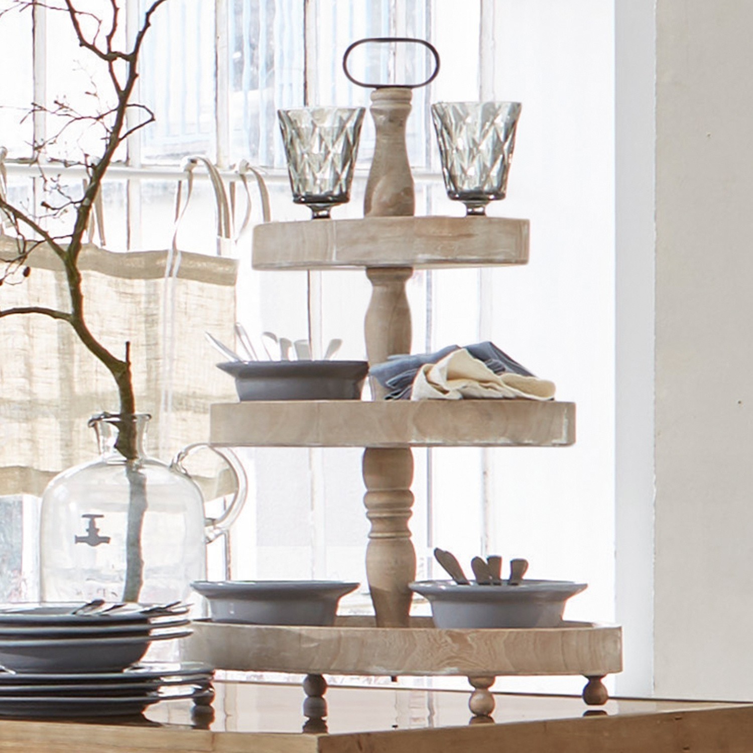 Dreistöckig aus massivem Tannenholz mit grauem Antik-Finish. Schön der gedrechselte Mittelfuß. Durch die stattliche Höhe darf sie auch gerne als kleiner […]