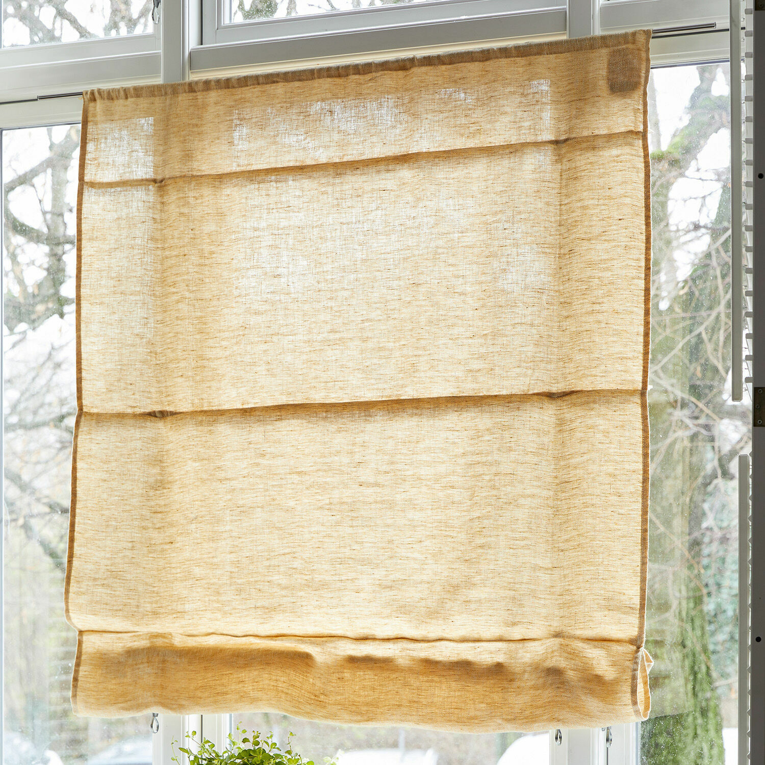 Eine natürliche Leinenqualität und ein neutraler Farbton – was könnte das Fenster Ihrer gemütlichen Landhausküche schöner veredeln als dieser effektvolle Faltrollo. Der leichte Knittereffekt und die lebendige Struktur ist typisch für das Naturmaterial. Dazu kommt das dezente Jacquardmuster im Ethno-Design, das die Optik noch reizvoller macht. Trotzdem fließt das Gewebe geschmeidig und ist dicht genug, um vor zu intensiver Sonneneinstrahlung und neugierigen Blicken zu schützen. Auf der Rückseite mit Ösen und einem Schnursystem versehen, ist der Rollo in der Höhe stufenlos verstellbar. So verleiht er auch Ihren Topfpflanzen und schönen Dekostücken auf dem Fensterbrett ausreichend Entfaltungsfreiraum. Die Anbringung ist einfach: Dank der bereits angebrachten Haken an der oberen Kante lässt sich die Gardine im Handumdrehen aufhängen und auch leicht wieder abnehmen.