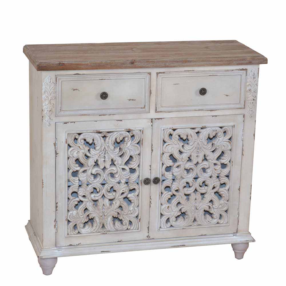 Flur Kommode in Creme Weiß verziert 2 türig