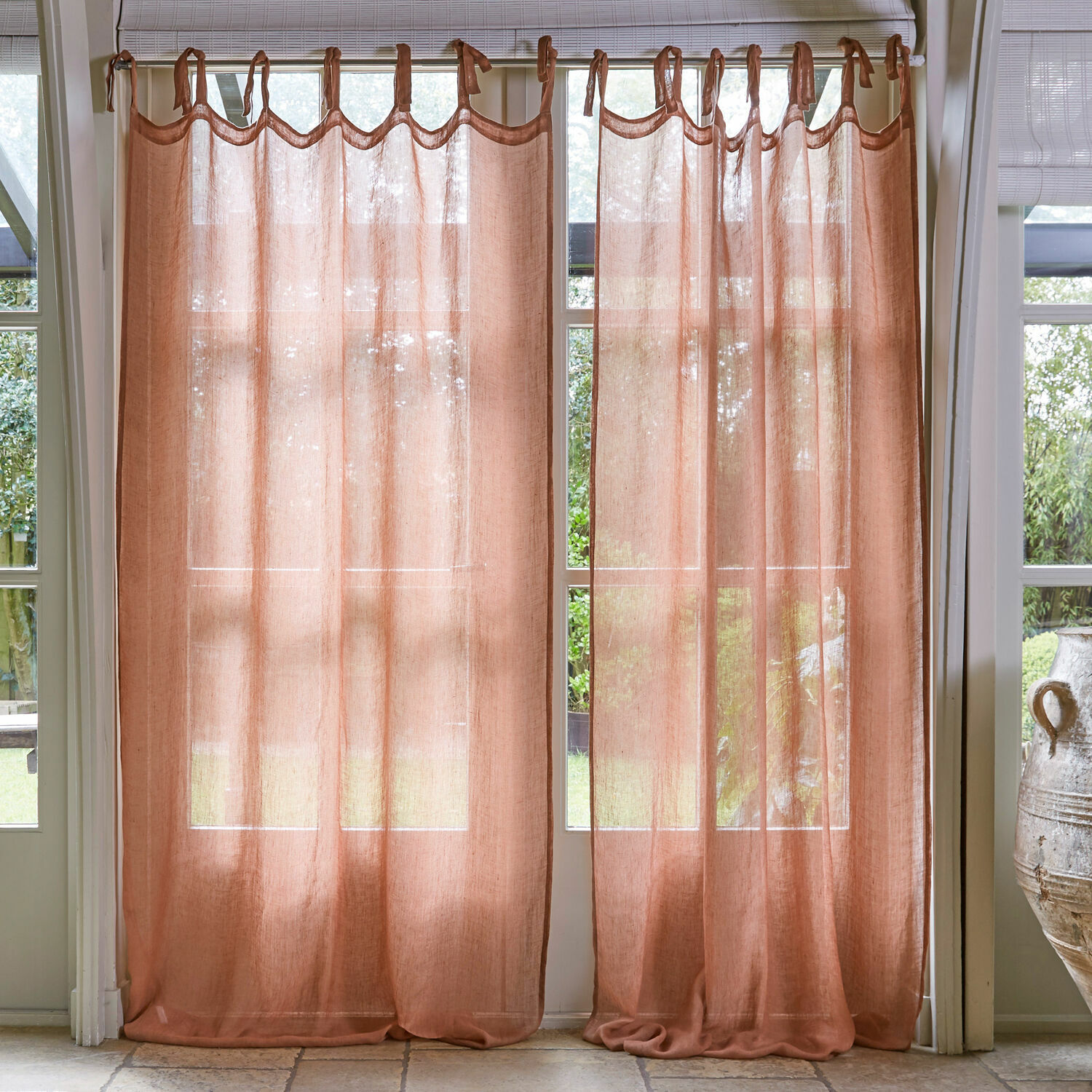Machen Sie Ihre Träume wahr und gestalten Sie Ihr Zuhause mit Wohnaccessoires in Ihren Lieblingsfarben. Dazu gehört auch dieses edle Gardinen-Set in wunderschönem Trendton, das Stilgefühl und Lebensfreude perfekt zum Ausdruck bringt. Gleichzeitig sorgt die reine Leinenqualität mit ihrer charakteristischen unregelmäßigen Struktur für eine ganz natürliche Note. Das etwas schwerere Gewebe verhält sich außerordentlich glatt und geschmeidig. Vor das Fenster gezogen, filtert es das Tageslicht und lässt es angenehm sanft in den Raum scheinen. Durch Bindebänder lässt sich das Duo dekorativ an die Vorhangstange anbringen und auf Wunsch in der Höhe etwas variieren. Genießen Sie den behaglichen Wohnakzent an Ihrem Fenster – mit Naturmöbeln aus Holz oder Rattan ergänzen sich die Textilien besonders harmonisch.