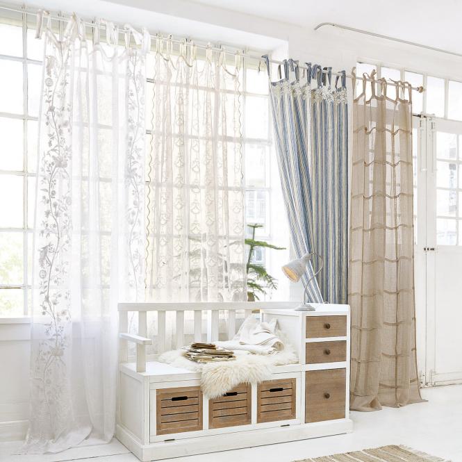 Natürlich schönes Leinengewebe. Das quadratische Muster entsteht durch hübsche Biesen und Zierborten. Erzeugt eine wundervolle Lichtstimmung am Fenster. Mit seinen […]