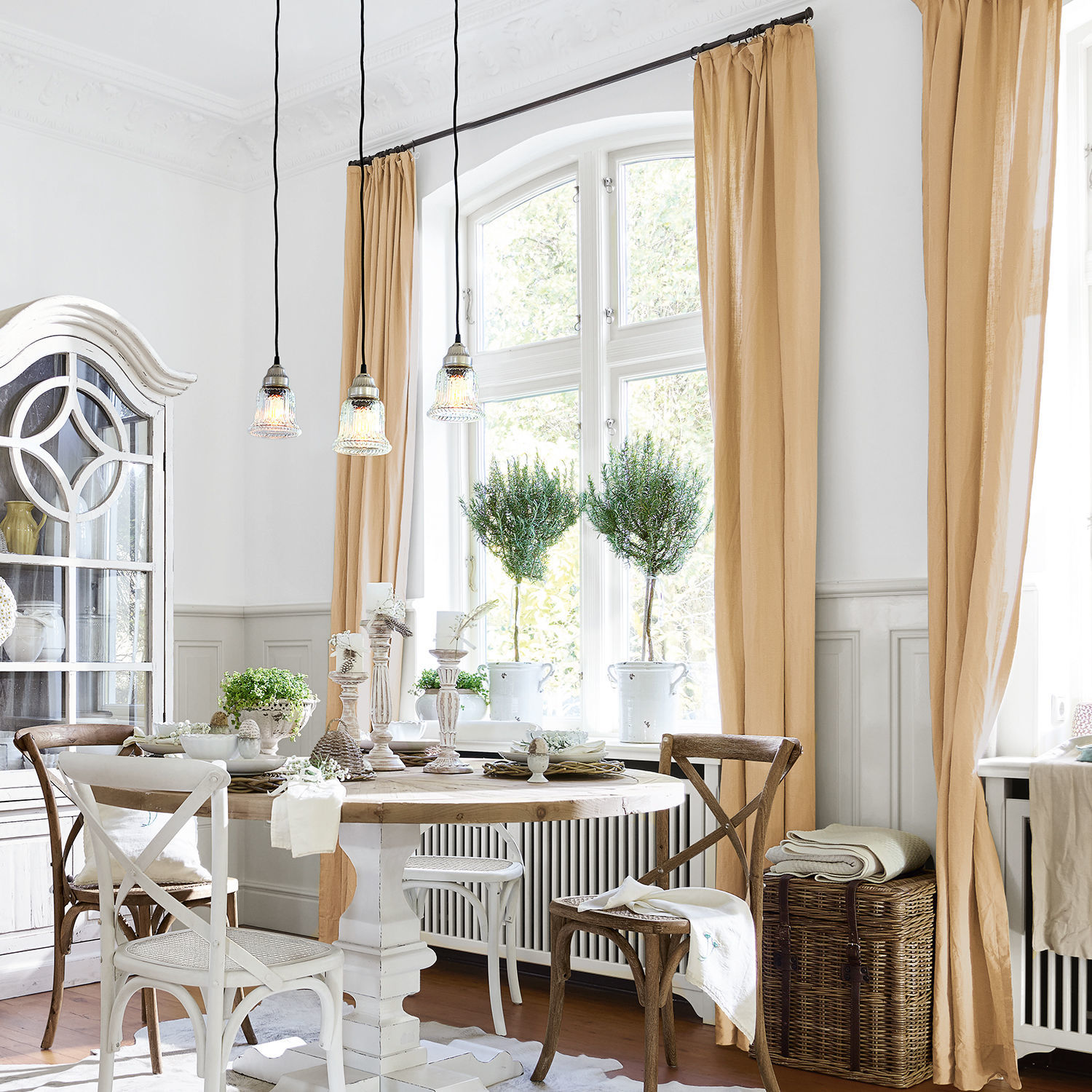 Das warme Licht des Morgens möchte man am liebsten den ganzen Tag einfangen. Mit dieser Gardine aus natürlichem, zart transparentem Leinen gelangen Sie ganz einfach zu dieser traumhaften Raumwirkung. Durch ihre raffinierte zweifarbige Webart begeistert sie mit zwei attraktiven Seiten: So zeigt sie sich auf der einen Seite in einem intensiven Gelbton, auf der anderen Seite in gedecktem Beige. Das macht sie zu einem echten Verwandlungskünstler, bringt Abwechslung in Ihr Wohnambiente und lässt selbst bei anspruchsvollen Gestaltungsideen keine Wünsche mehr offen. Wenden Sie die Gardine ganz nach Stimmung und Einrichtungskonzept – mal dezent, mal lebendig. Dekorative Bindebänder runden das Textil ab und ermöglichen ein leichtes Anbringen an der Vorhangstange. Ein stilsicherer Hingucker am Fenster – perfekt für Ihr ganz persönliches Wohngefühl, ob rustikaler Landhaus-Look, romantischer Vintage-Stil oder moderner Stadthaus-Style.