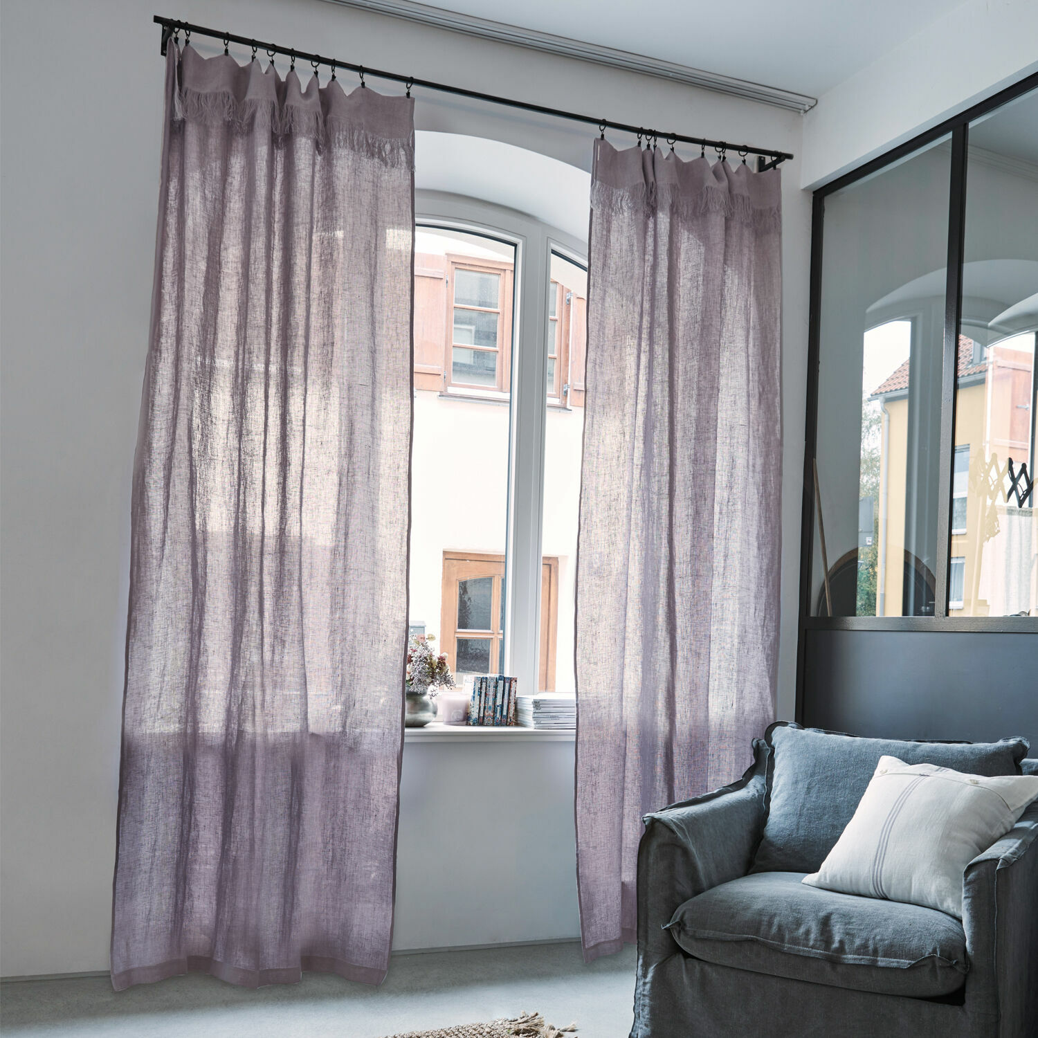 Wohntextilien in sanften Farben, dazu ausgesuchte Möbelstücke aus massivem Holz und Glas. Das wirkt einfach edel. Wenn diese zeitlos elegante Wohnraumgestaltung Ihrem Stil entspricht, dann gehört diese Gardine unbedingt dazu. Mit einem schlichten Design, einer dezenten Farbgebung und einer natürlichen Materialwahl. Hier ist weniger mehr. Die charaktervolle Struktur des reinen Leinengewebes kommt dadurch besonders schön zur Geltung. Einzig die Fransenkante im oberen Bereich setzt den schmückenden Akzent. Vor das Fenster gezogen schützt die Gardine vor starker Sonneneinstrahlung und neugierigen Blicken, zugleich verleiht sie dem Raum ein angenehmes gedämpftes Licht. Die Aufhängung ist ein Kinderspiel: Einfach die obere Partie auf Wunschlänge falten und mit Klipp-Ringen an die Vorhangstange befestigen. Die äußerst praktischen Klipp-Gardinenringe sind im Lieferumfang nicht enthalten, können jedoch bei LOBERON separat bestellt werden.