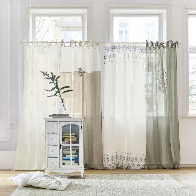 Die Medaillon-Stickerei auf reinem Leinen ist einfach bezaubernd! Mit den hübschen Schleifenbändern lässt sich die Gesamtlänge noch etwas variieren.