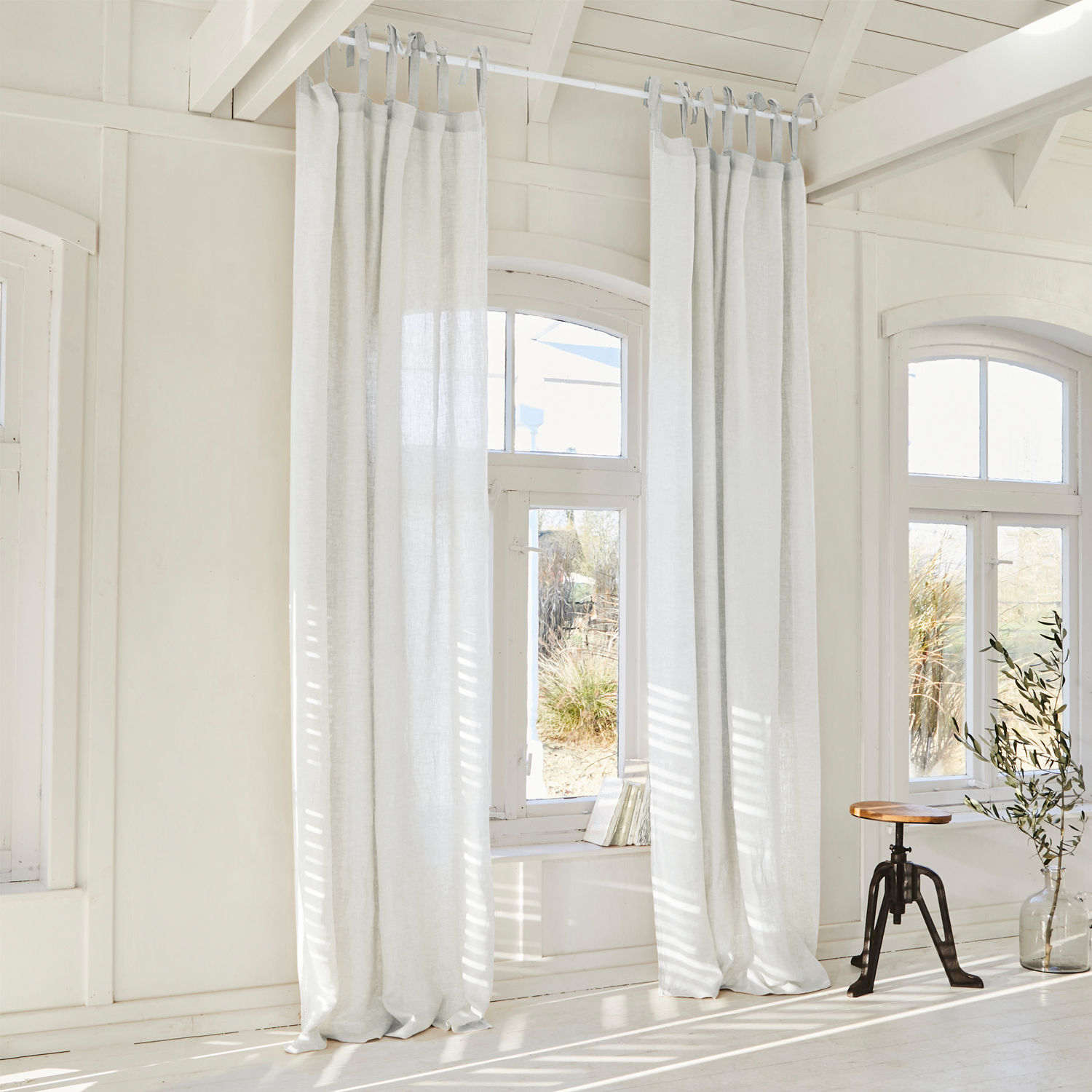 Ein angenehmes Ambiente voller Leichtigkeit verbreitet dieser ansprechende Vorhang aus reinem Leinen im Zimmer. Der unifarbene Vorhang ist aus luftig leichtem Leinenstoff gefertigt. Das schlichte Design setzt einen frischen Akzent am Fenster. Mit hübschen Bindebändern wird das Accessoire an einer Gardinenstange befestigt. Je nachdem wie die Bänder befestigt werden, kann der Vorhang etwas höher oder aber etwas tiefer hängen. So kann bei Bedarf die Länge angepasst werden. Zudem können die Bindebänder locker geknotet oder zu verspielten Schleifen gebunden werden. Viele ansprechende und freundliche Farbtöne stehen zur Auswahl. Das zeitlos schöne Design lässt sich wunderbar kombinieren und harmoniert mit jedem Einrichtungsstil – vom maritimen Long-Island-Stil bis zum klassischen Landhaus-Stil. Ein Klassiker, der jeden Raum schmückt.
