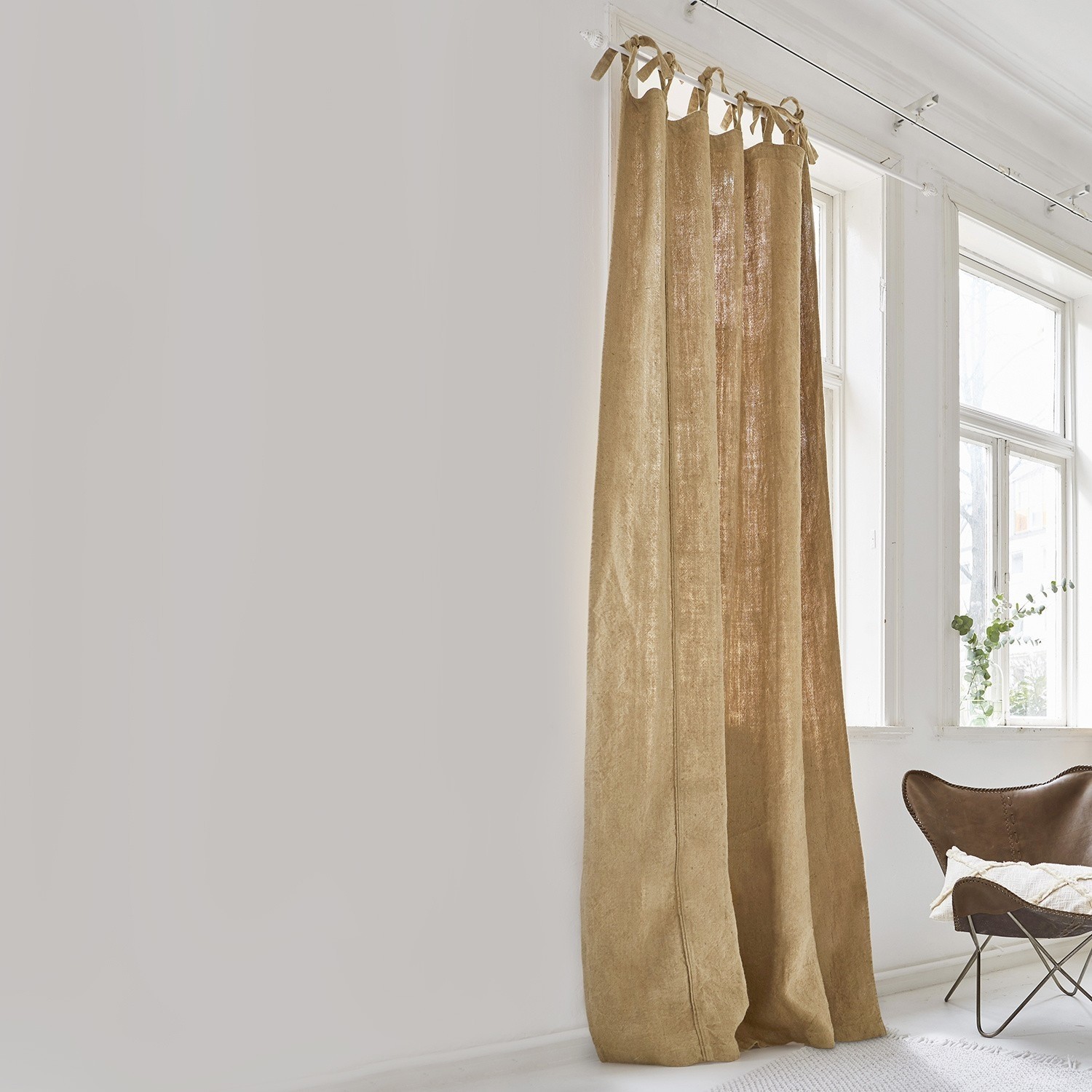 Ein klares Design, das völlig pur für sich steht und ohne jede Verzierung oder Schnörkel auskommt. Die elegante Gardine aus reiner Jute überzeugt mit ihrem schlichten Chic und der naturnahen Anmutung. Sie hat einen hübschen Fall und schmückt Ihre Räume mit dezentem Flair. Dank dekorativer Bindebänder lässt sie sich ganz leicht an einer Gardinenstange befestigen. Zum Landhaus-Stil sowie auch zum Shabby-Chic ist sie ein angenehm bodenständiger Akzent.