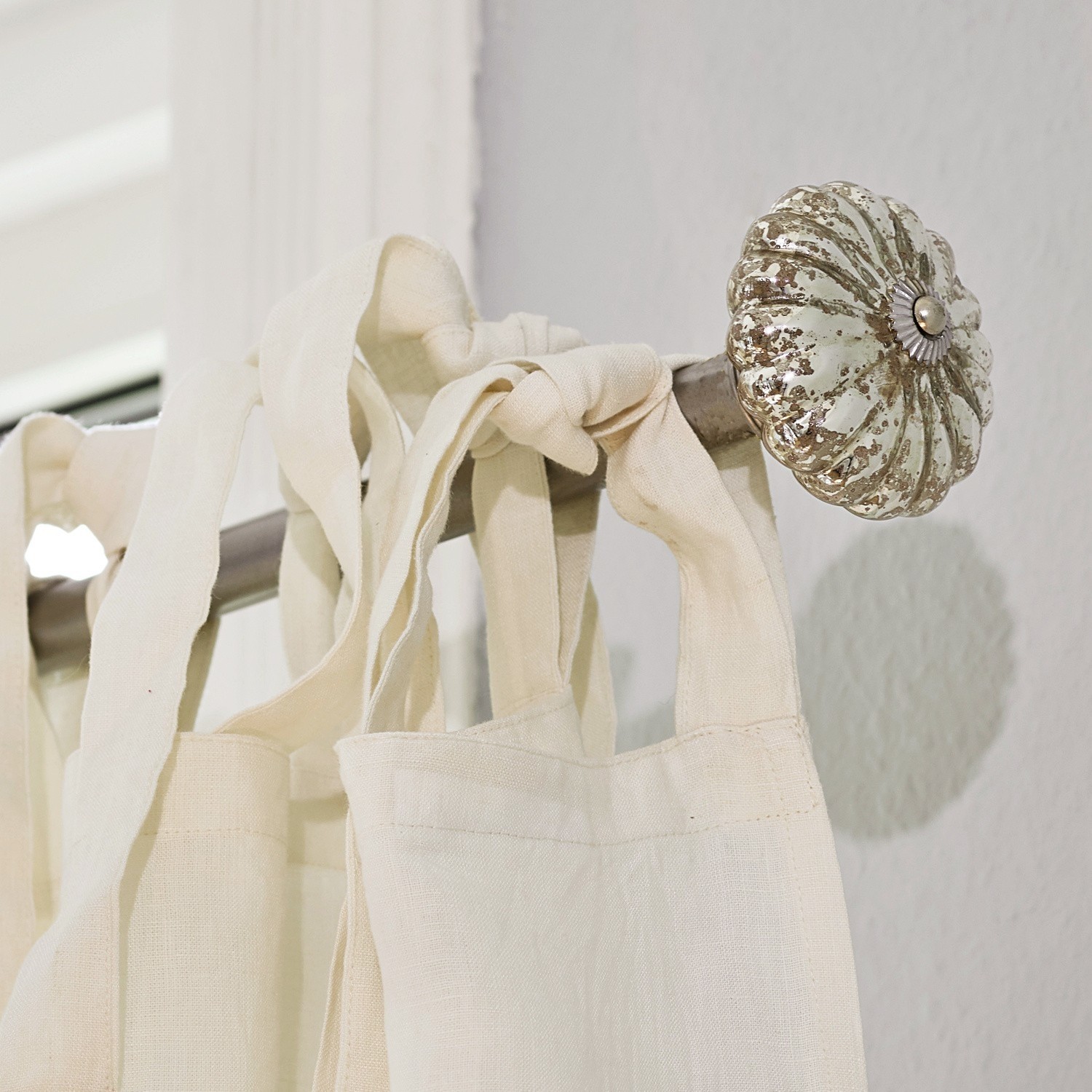 Dass Gardinenstangen nicht langweilig aussehen müssen, beweist dieses Modell. Die Stange selbst besteht aus reinem Eisen, doch die hübsch verzierten Endstücke sind aus inwendig verspiegeltem Glas gefertigt. 12 Ringe für das bequeme Anbringen Ihrer Gardinen werden gleich mitgeliefert.