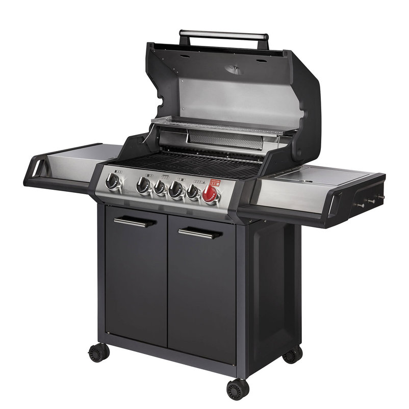 Dieser Gasgrill von Enders lässt bei einem Grillmeister keine Wünsche offen. Der Grill ‘Monroe Black PRO 4 IK Turbo’ verfügt über vier leistungsstarke Brenner und eine 800-Grad-Turbo-Zone. Bei diesem innovativen Grillgerät ist jedes Detail von der Piezo-Zündung über die praktische Aufbewahrung der Gasflasche gründlich durchdacht.
