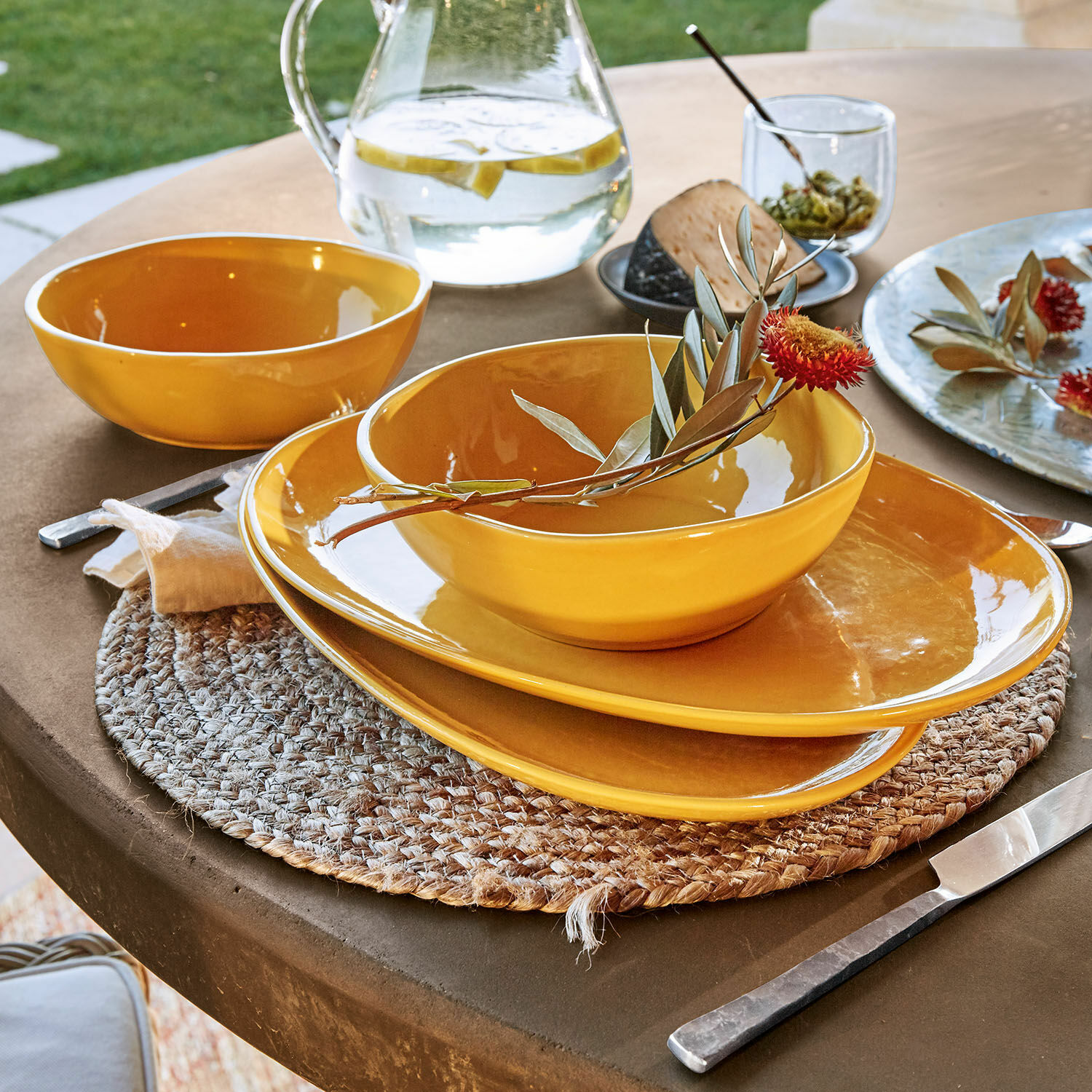 Neben der Einrichtung, werden auch Gebrauchsgegenstände wie das Essgeschirr immer mehr zum Spiegelbild eines neuen, entspannten Lifestyles – individuell und stilvoll soll es sein, aber immer ökologisch korrekt. Genau das verkörpert auch dieses hochwertige Steingut-Set, das aus zwei flachen Tellern und zwei Müslischalen besteht. Hier zeigt sich die Kür vollendeter Handwerkskunst: Für jedes Stück wurde eine eigens entwickelte Form gefertigt, diese per Hand mit Steingutmasse ausgegossen und im Ofen gebrannt. Eine glanzvolle Glasur in dezent gesprenkelter Optik sorgt für das edle Finish. Kleine Unregelmäßigkeiten im Design sind möglich, doch gerade diese Besonderheiten verleihen Teller und Schale den Unikat-Charakter. So einzigartig kann Tischkultur für den Alltag ausfallen. Schon beim Frühstück schafft es eine herrlich gemütliche Atmosphäre, die zum Genießen und Verweilen einlädt.