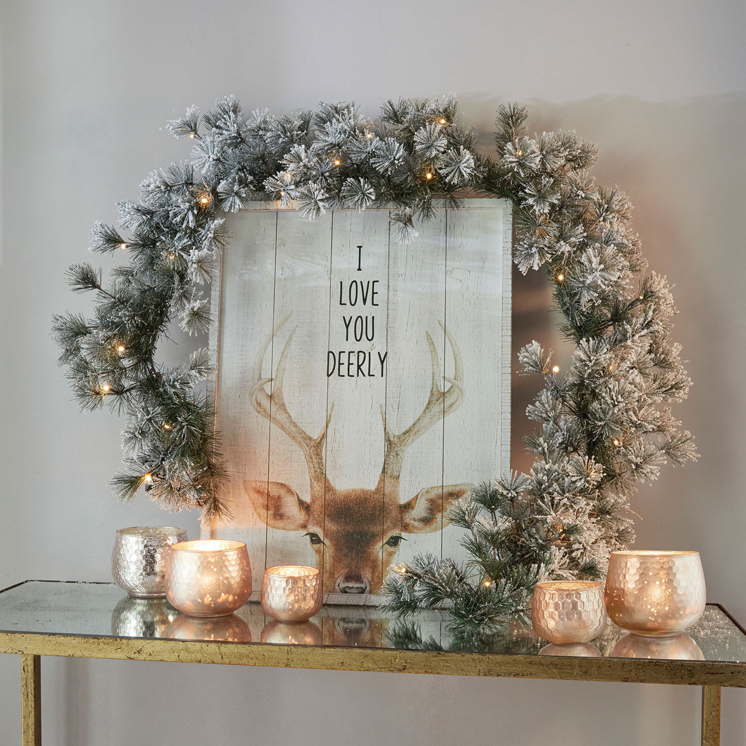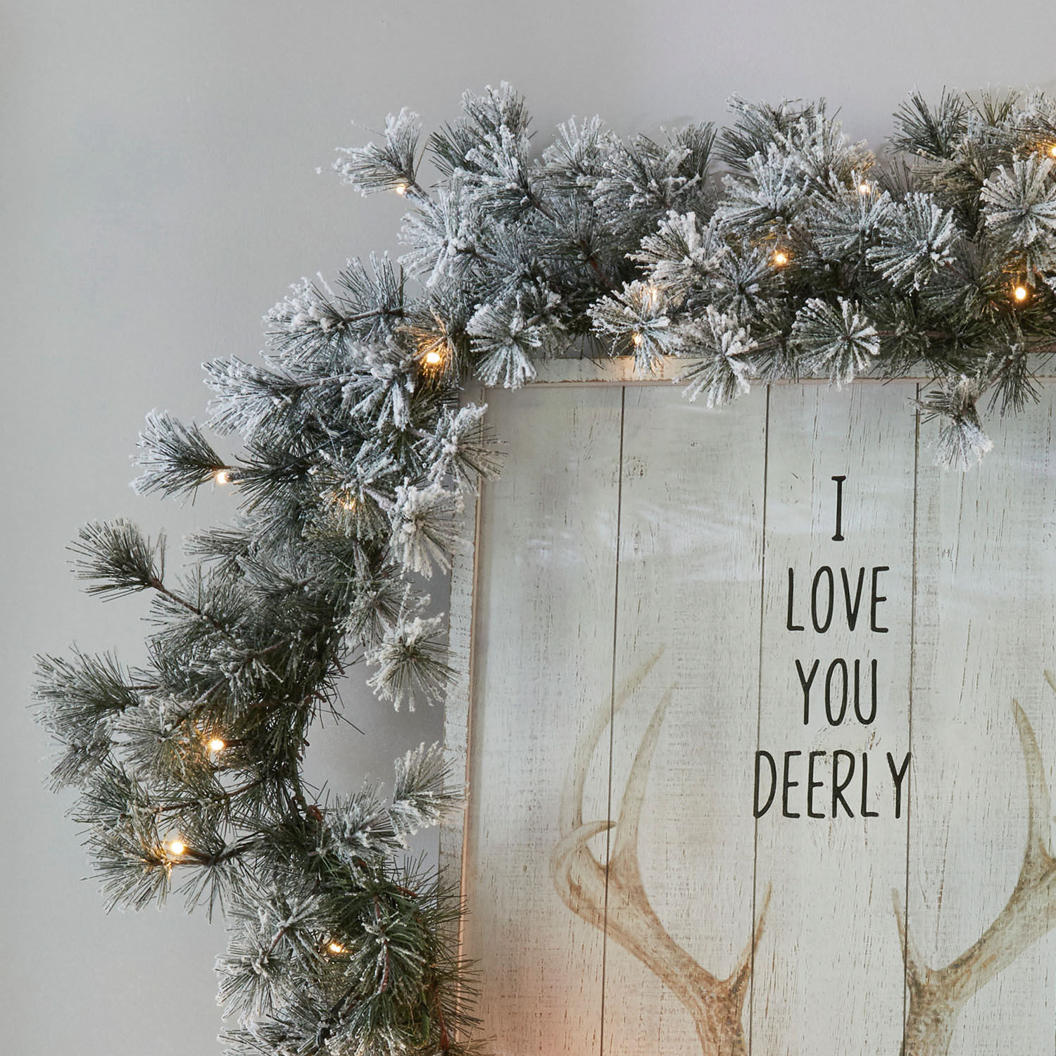 Die edle Girlande ist eine optisch sehr natürliche Nachbildung mit feinem Kunstschnee. 30 warmweiße LED-Lichtlein sorgen für eine festliche Stimmung und illuminieren Ihr Zuhause gemütlich. Die lange Girlande ist ein echtes Highlight, das jedem Interior einen wunderbar winterlichen Akzent verleiht. Träumen Sie bei diesem Anblick von verschneiten Wäldern und freuen Sie sich viele Jahre über das nie welkende und nadelnde Design. Drapieren Sie es vielleicht um das Treppengeländer, schmücken Sie den Türrahmen oder einen Kamin und erleben Sie besinnliche Festtage mit viel Charme. Dank Batteriebetrieb sind Sie völlig frei in der Platzwahl, und auch störende Kabel sind hierbei kein Thema. Ein Klassiker für jedes Weihnachtsfest.