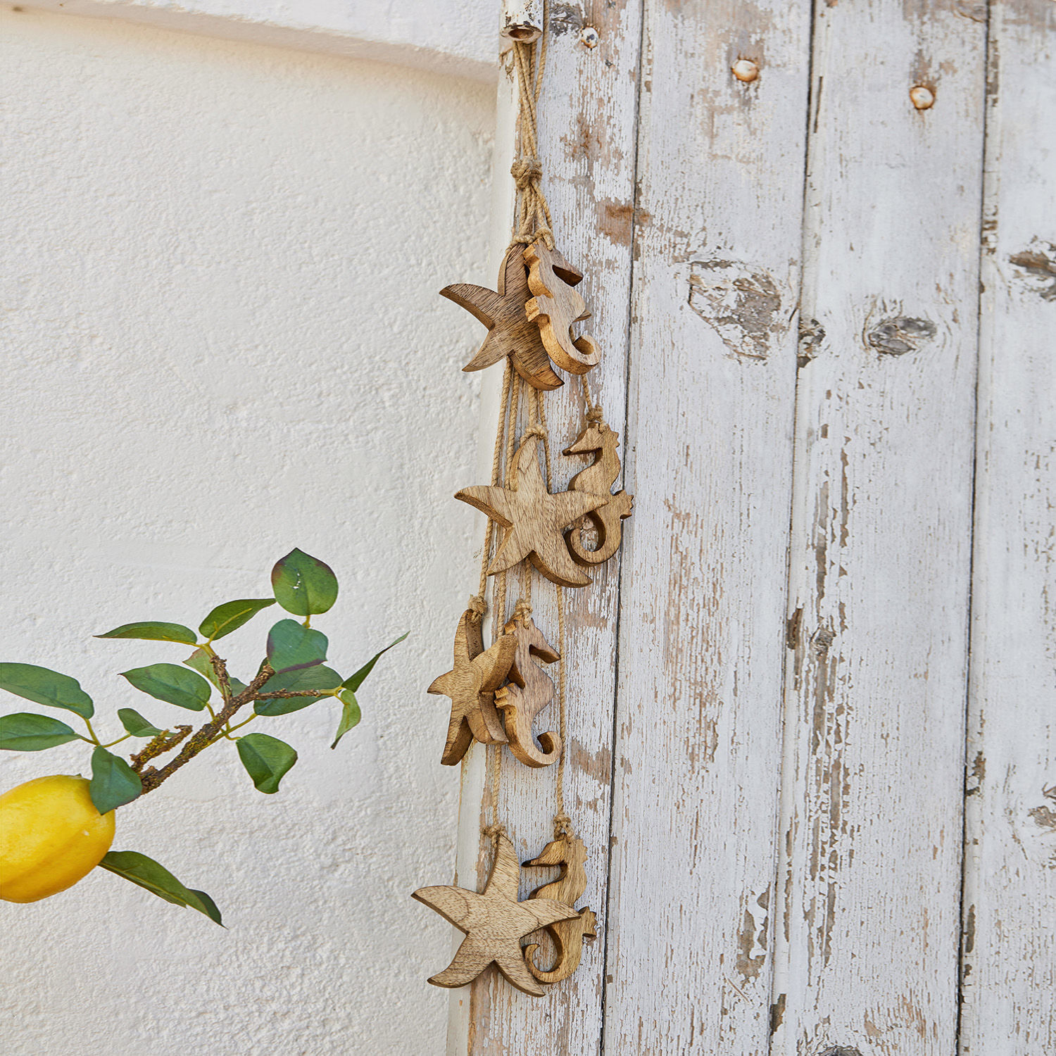 Diese Girlande aus natürlich schönem Mangoholz fügt ihrem Zuhause eine maritime Note hinzu, ohne zu dick aufzutragen. Subtil und stilvoll präsentiert sie die feine Maserung des Holzes und genau dadurch entsteht ein spannender Kontrast. Die stilisierten Meeresbewohner sind schließlich aus einem sehr erdverbundenen Naturmaterial geschnitzt. Das macht die Girlande zu einem vielseitigen Accessoire. Sie ist der perfekte Wandschmuck, lässt sich aber auch wunderschön mit anderen Deko-Objekten horizontal arrangieren.