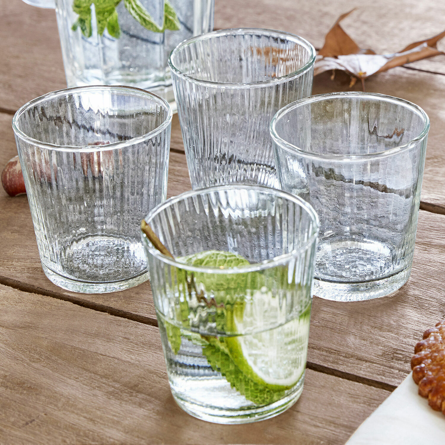 Ein Quartett, das klassisch elegant und absolut zeitlos ist. Diese vier schönen Gläser bestehen aus mundgeblasenem Glas. Daher bekommt jedes Glas so seine ganz persönliche Note. Zusammen sind sie angenehm leicht und liegen gut in der Hand. Hiermit ist Ihr Tisch immer perfekt gedeckt, ob zum Sonntagsfrühstück, dem Brunch mit Freunden oder zum Romantik-Dinner. Auch fällt es mit so hübschen Accessoires leichter, immer ausreichend zu trinken. Wer möchte, könnte in den handlichen Gläsern auch Blüten arrangieren oder sie als Halter für Stifte, Pinsel und andere Dinge nutzen. Auch Dekoratives wie ein Potpourri kann in den dezenten Gläsern wunderbar seinen Auftritt haben. Hiermit treffen Sie in jedem Fall immer eine gute Wahl.