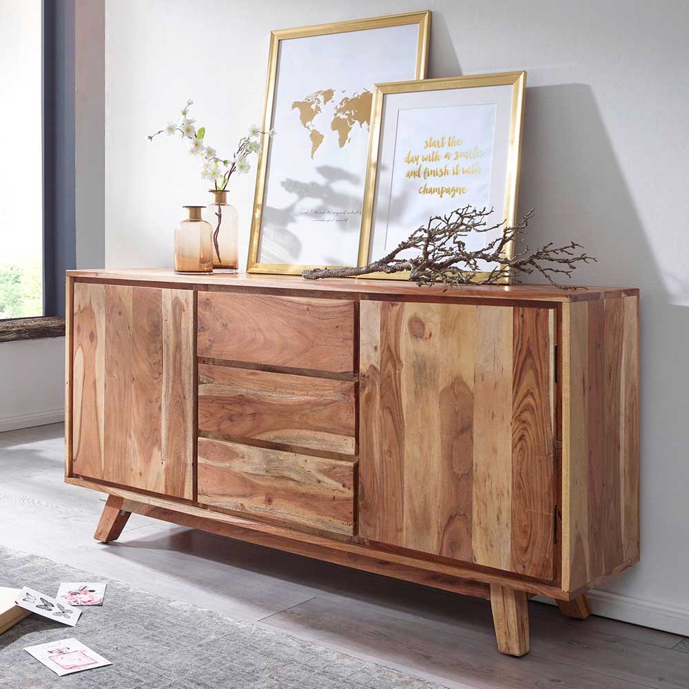 – Sideboard Akaziefarben – Wohnzimmerschrank Akazie Massivholz – Kommode Klassisch schlicht – Sidebord Breite: 160 – Küchenkommode Höhe: 81 – Kommode holz Tiefe: 40 – Kommode massivholz Mit drei Schubladen und mit Holzauszug – Wohnzimmer schrank Schrank-Tür: mit Drehtüren – Wohnzimmer kommode 2-türig, Innenaufteilung: mit Einlegeböden – Kommode massiv Ohne Beleuchtung – Kommode echtholz Fertig montierte Anlieferung (eventuell müssen noch Kleinteile angebracht werden) – Große kommode 4-Fuß Gestell aus Massivholz – Echtholz kommode Massivholz Oberfläche und Lackiert – Esszimmer kommode Griffmulden – Kommode vollholz Rechteckige Form – Massivholzkommode Massivholz Tür – Wohnzimmerkommode Griff Form: GriffmuldeInformationen zur Lieferung:Die Zustellung dieses Produktes erfolgt per Spedition. Sie werden vor der Auslieferung durch die ausliefernde Spedition kontaktiert.Terminvereinbarung: Sie werden frühzeitig (ein paar Tage im Voraus) durch die ausliefernde Spedition kontaktiert und Ihnen der Auslieferzeitpunkt mitgeteilt. Die Kontaktaufnahme erfolgt per Telefon. Bei telefonischer Nichterreichbarkeit werden Sie per Postkarte über das Auslieferdatum informiert.Die Lieferung erfolgt aus Kostengründen Frei Bordsteinkante (bis zur ersten verschlossenen Tür). Für den weiteren Transport der Ware sind Sie eigenverantwortlich.Die Auslieferung erfolgt von Montags bis Freitags. Eine Zustellung an Sonn- und Feiertagen ist nicht möglich.