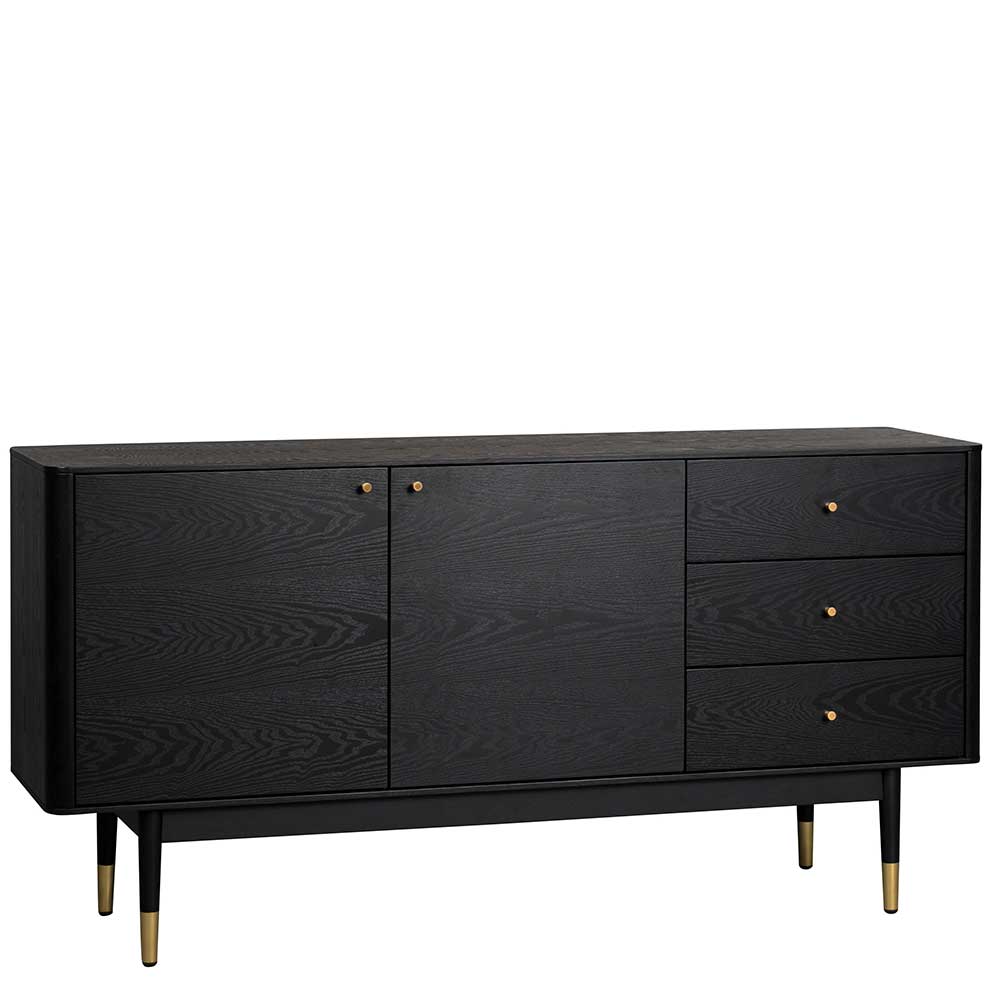– Sideboard Schwarz – Wohnzimmerschrank MDF und Eiche Massivholz – Kommode Retrostil – Sidebord Breite: 160 – Küchenkommode Höhe: 79 – Kommode holz Tiefe: 42 – Kommode massivholz Mit drei Schubladen, mit Metallauszug und mit Soft Close – Wohnzimmer schrank Schrank-Tür: mit Drehtüren – Kommode massiv 2-türig (mit Türdämpfung), Innenaufteilung: mit Einlegeböden – Wohnzimmer kommode Ohne Beleuchtung – Kommode echtholz Fertig montierte Anlieferung (eventuell müssen noch Kleinteile angebracht werden) – Große kommode 4-Fuß Gestell aus Massivholz – Echtholz kommode Furniert, Gebeizt und Lackiert – Kommode vollholz Metallgriffen – Esszimmer kommode Rechteckige Form – Massivholzkommode Holzwerkstoff Tür – Wohnzimmerkommode Griff Form: Knopfgriff