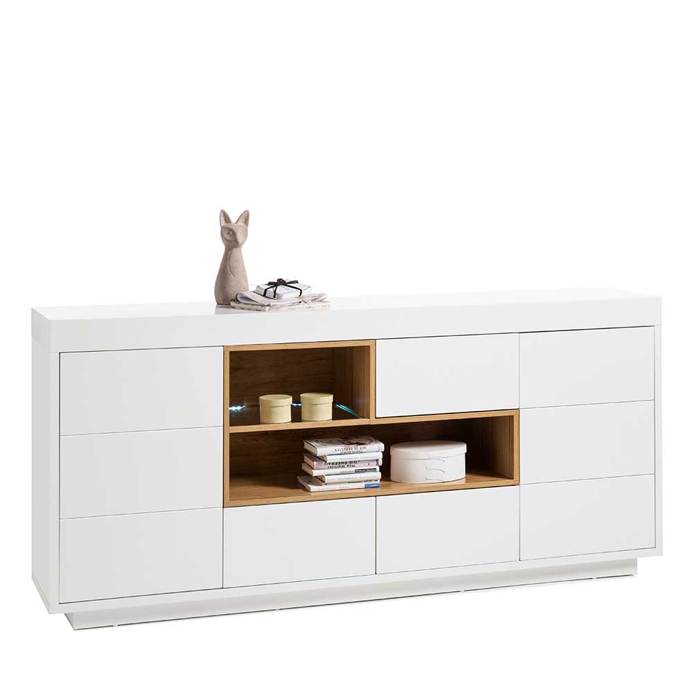 Große Kommode in Weiß und Eiche Dekor Skandi Design
