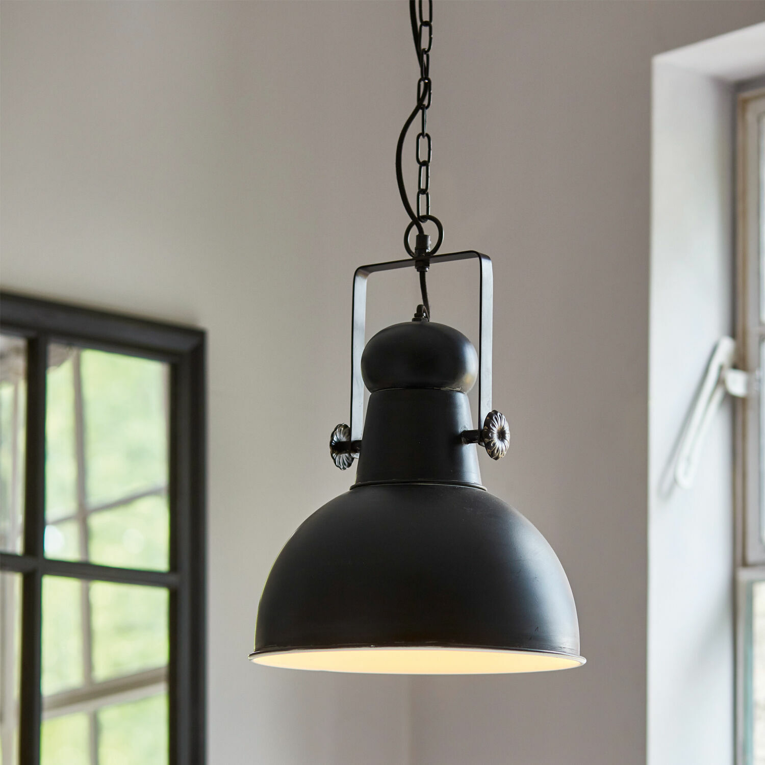 Man sieht ihr deutlich an, dass sie schon einiges erlebt hat, aber wo mag die Hängelampe bisher gehangen haben? In einer traditionsreichen Gobelin-Manufaktur, für die Frankreich berühmt war? Oder in der Herstellung kostbarer Fayencen, bei der edles Porzellan zum Schluss von erfahrenen Händen kunstvoll bemalt wurde? Dieses Geheimnis werden wir wohl nie ergründen, aber eines ist sicher: Hängelampen wie diese hier waren vor allem in französischen Produktionsstätten verbreitet, denn durch die halbrunde Form des Schirms mit der typischen Kuppel wird das Licht wie mit einem Spot gezielt nach unten gelenkt und sorgt dort für beste Lichtverhältnisse bei filigranen Arbeiten. Eine Eigenschaft, die auch im 21. Jahrhundert noch geschätzt wird, wenn die Hängelampe Ihren Esstisch so gut ausleuchtet, dass auch eine kleine Fischgräte nicht übersehen werden kann. Die rustikalen Gelenke und der Haltebügel geben der Hängelampe die charakteristische Gestalt und betonen ihre Herkunft aus dem gehobenen Industrie-Design. Ein Klassiker, der natürlich in ein stylisches Loft passt, der aber auch keine Berührungsängste mit dem modernen Landhaus-Look hat, sondern dieses wohnliche Ambiente mit einer coolen Facette bereichern wird. Komplett aus Eisen gefertigt und mit einem authentischen Antik-Finish veredelt.