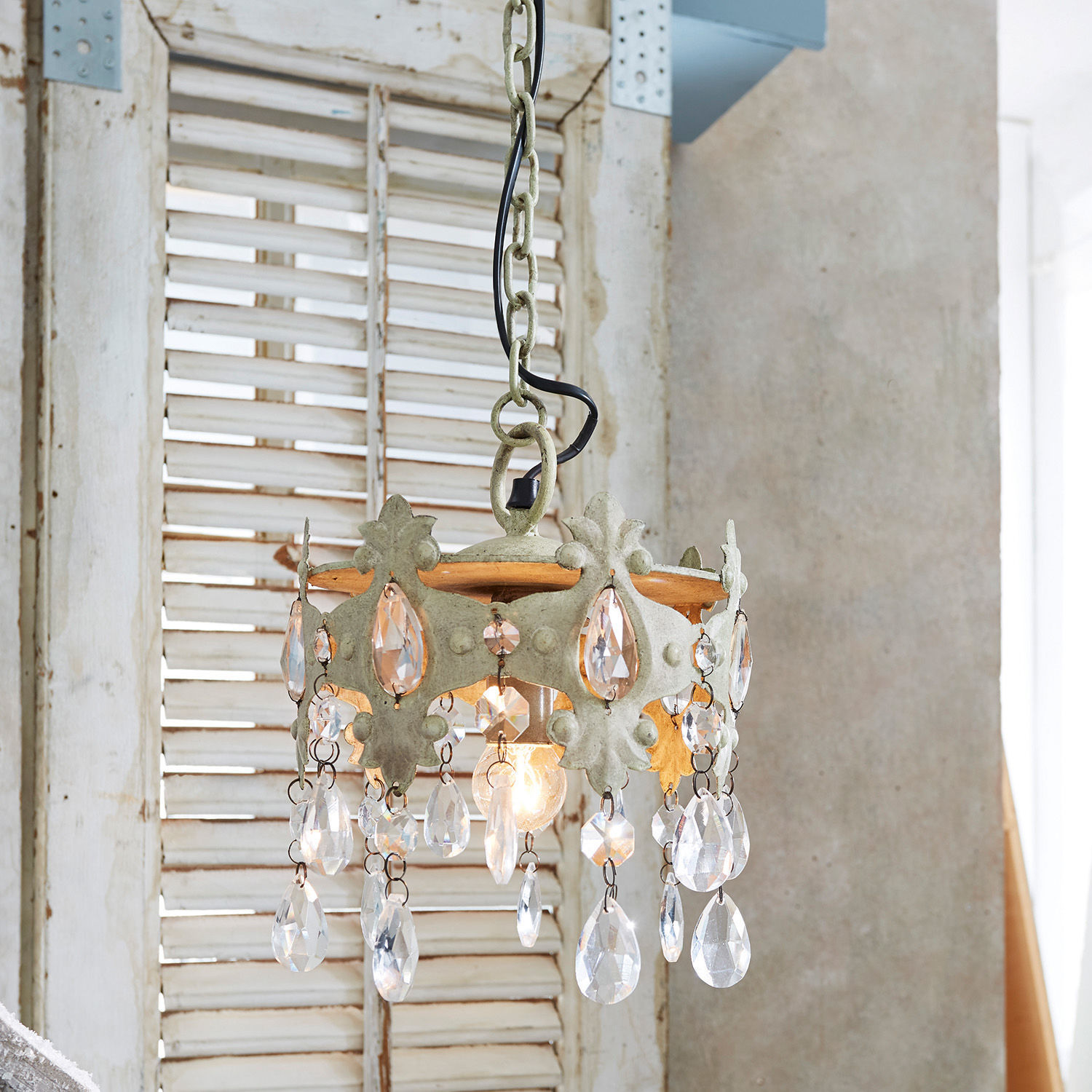 Diese Hängeleuchte ist nicht einfach nur ein hübscher Lichtspender, sondern man muss hier wirklich von Beleuchtungskunst sprechen. Sie wirkt wie die kleine Schwester eines antiken Kronleuchters. Das robust geschmiedete Eisengestell wurde in einem aufwendigen Verfahren veredelt, um einen authentischen Antik-Look zu zaubern. Es wird in mehreren Schichten appliziert und sorgt für genau die richtige Dosis Shabby Chic. Die wunderschönen Muster des Gestells unterstreicht zudem die Schönheit des floralen Designs. Zu diesem bereits zauberhaftem Auftritt gesellen sich noch funkelnde Glasprismen, diesem hochwertigen Stück einen königlichen Charakter verleihen.