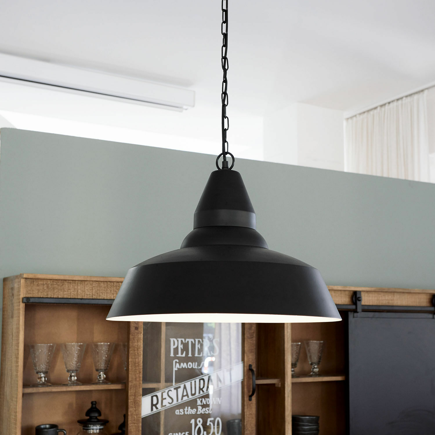 Hüllen Sie Ihr Wohnambiente in strahlendes Licht: Die aufs Wesentliche reduzierte Optik dieser stilvollen Hängelampe im Industrial-Stil macht sie zu einem zeitlosen Schmuckstück. Setzen Sie Ihre schönen Möbel, Skulpturen, Bücherregale, Dekoobjekte oder Blumenarrangements mit der Helligkeit dieses schicken Helfers ins rechte Licht. Oder Genießen Sie heitere und entspannte Stunden unter dem Lichtkegel – beim Essen in der Küche mit der Familie und Freunden, oder beim Arbeiten am Schreibtisch, oder wenn Sie Ihrem Hobby nachgehen. Egal wo oder zu welchem Zweck: Ihr Wohnambiente wird mit dieser stylischen Lampe in makellos klarer Ästhetik erstrahlen. Beim Leuchtmittel haben Sie freie Wahl, denn es ist nicht im Lieferumfang enthalten.