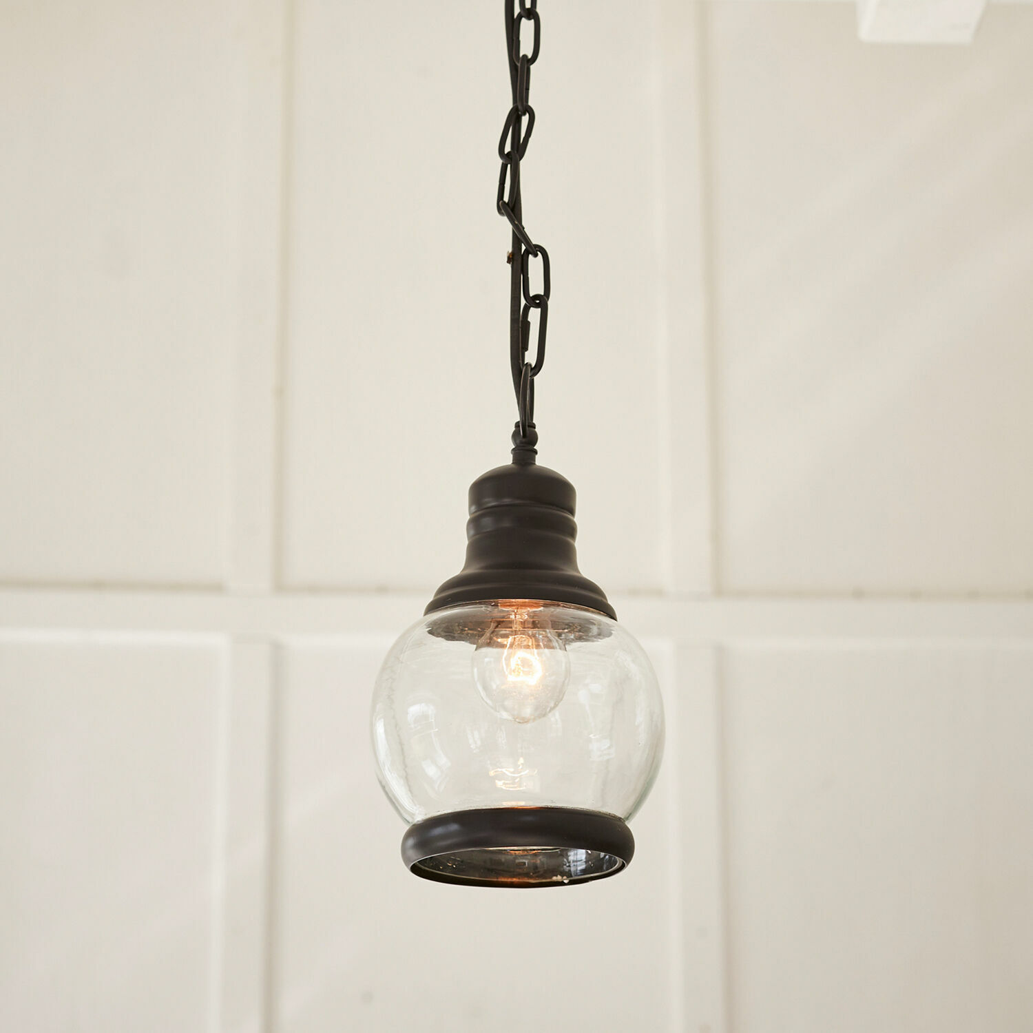 Was begeistert uns eigentlich so an Objekten aus längst vergangenen Zeiten? Der praktische Aspekt, dass sie sich über viele Jahre im täglichen Gebrauch bewährt haben? Oder ist es nicht vielmehr diese geheimnisvolle Kombination aus klassischer Formensprache, hochwertigen Materialien und handwerklich perfekter Verarbeitung, wie sie früher für jeden Gebrauchsgegenstand ein Muss waren? Diese Hängelampe kann mit einer nostalgischen Glockenform aufwarten, die durch die Wahl der verwendeten Materialien aufs Beste unterstrichen wird. Denn das glatte, mattschwarz schimmernde Eisen, aus dem die hohe Kuppel und der untere Abschluss der Hängelampe gefertigt wurden, setzt jede einzelne Wölbung und Rundung perfekt in Szene und zeigt die hohe handwerkliche Qualität, die hier zum Einsatz kam. Gleiches gilt für den hochwertigen Glaskörper, in dem das Leuchtmittel sitzt und aus dem das warme Licht seinen Weg in Ihre Räume finden kann. Stilecht an einer ebenfalls schwarzen Eisenkette aufgehängt verströmt die Hängelampe ihr zauberhaftes Vintage-Flair dann gerne überall dort, wo es Ihnen gefällt