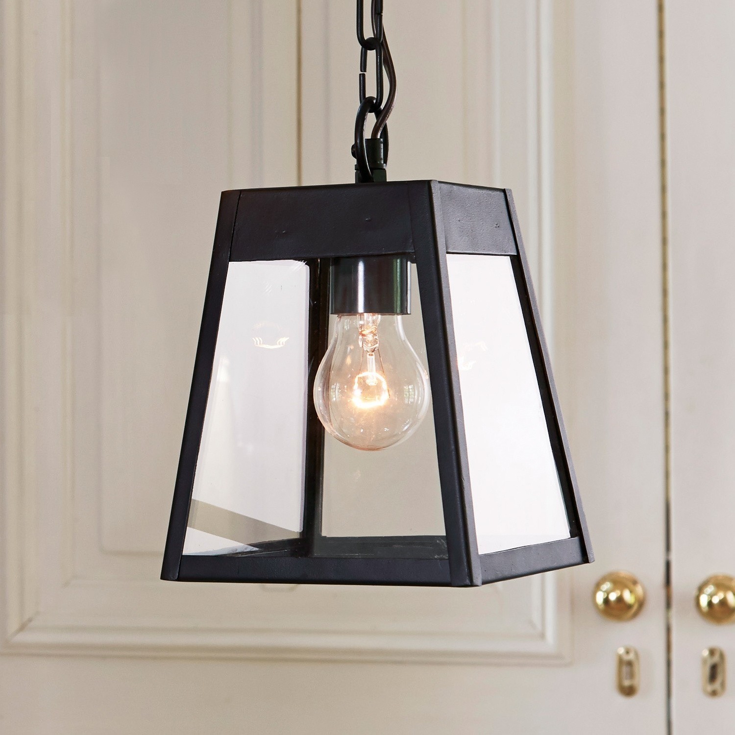 Hängelampen im klassischen Laternen-Stil sind derzeit höchst angesagt. Zu Recht. Denn diese gradlinige Leuchte aus schwarzem Eisen und Glas bringt Ihr schönes Zuhause äußerst stilvoll zum Leuchten. Die Laternen-Leuchte ist mit vier Glaseinsätzen versehen und bietet Platz für eine Glühbirne. Praktisch: Die gesamte Hängelampe wird mit einer robusten Gliederkette an der Decke befestigt. Das passende Kabel hat eine Länge von 1,50 Metern. Unser Einrichtungstipp: Besonders schön wirkt die Hängelampe im Doppelpack über dem Esstisch, in der Küche oder als Highlight über dem Couchtisch. Durch ihr schnörkelloses und schlichtes Design präsentiert sich die Lampe absolut zeitlos und passt somit perfekt zu jedem Einrichtungsstil.