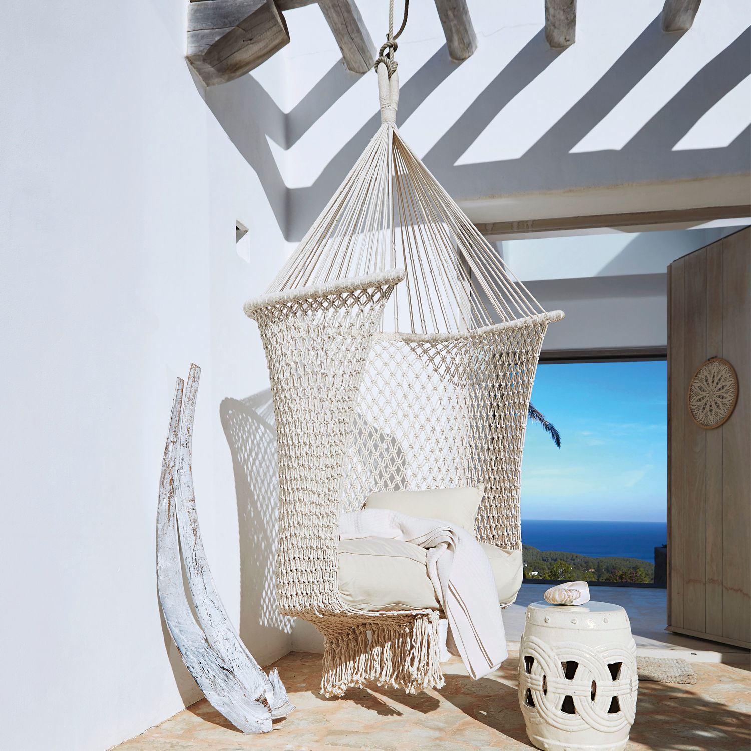 Für verträumte Stunden. Feines Makramee-Geflecht aus reiner Baumwolle, das die Eisen-Stabilisierung komplett umwickelt. Traumen Sie sich in den Urlaub: Der helle, […]