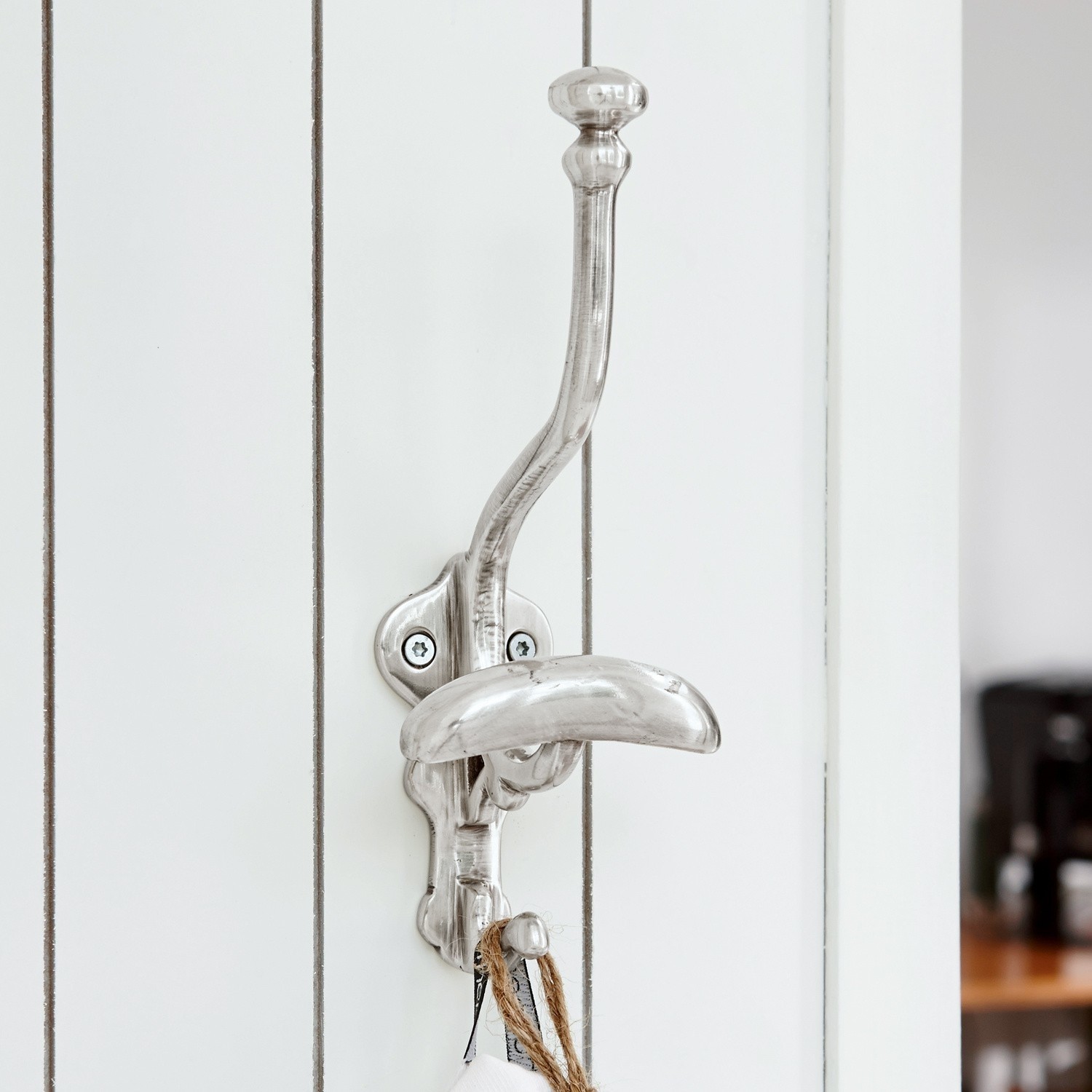 Manche Produkte sind so einfach, so elegant und smart konzipiert, das man die Genialität dahinter gar nicht mehr wahrnimmt. Dieser Garderobenhaken ist genau so ein Produkt. Er wird aus reinem Messing geformt und mit einem Antiksilber-Finish veredelt, was für einen ganz besonderen Glanz sorgt. Das wohlgeformte Stück ist mit drei Haken ausgestattet, damit nicht nur eine Jacke, sondern gleichzeitig auch ein Schal und eine Kopfbedeckung Platz finden.