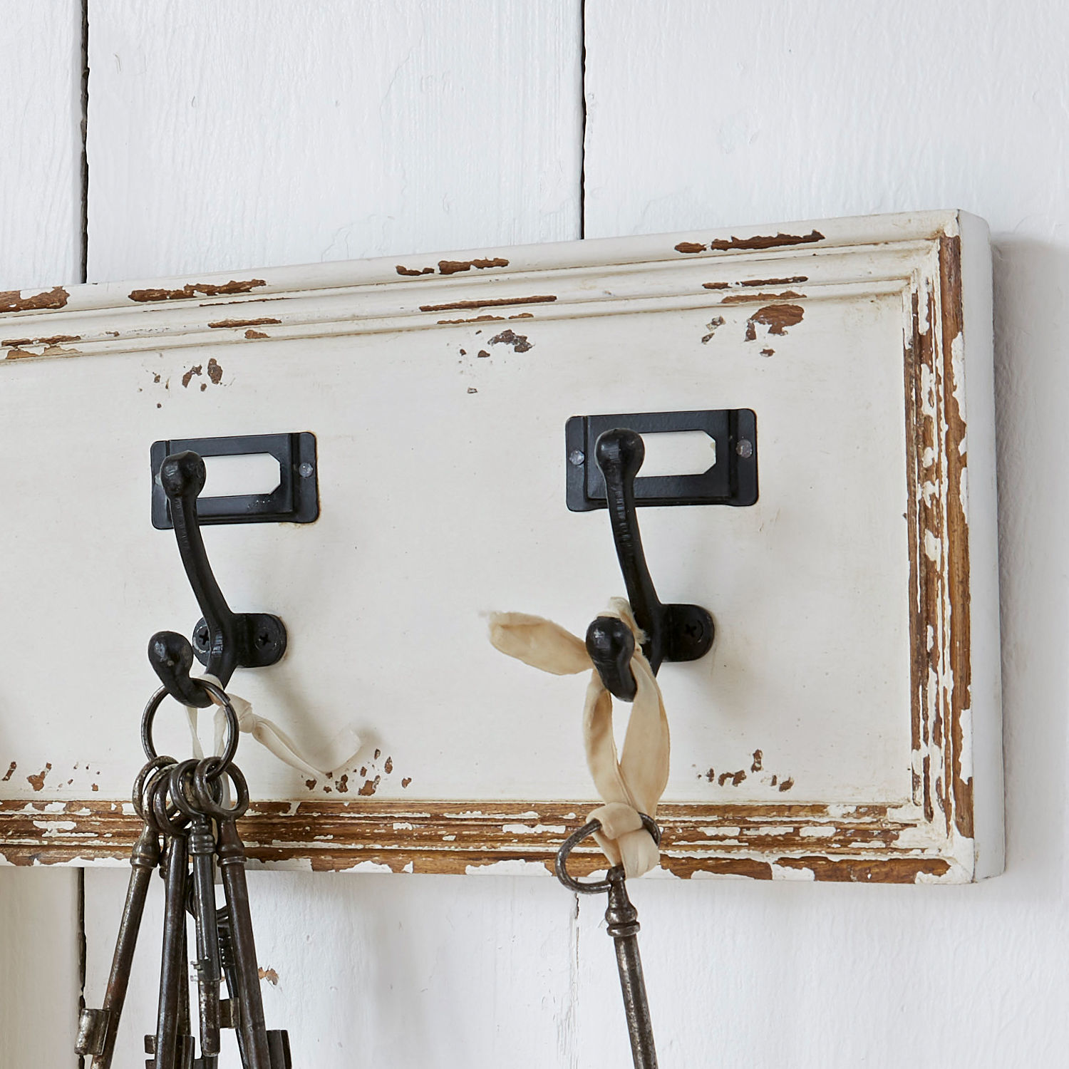 Dieses Schmuckstück erinnert uns an die Hotelschlüsselhalter in kleinen italienischen Boutique-Hotels der Siebziger Jahre. Die Plakette aus Mangoholz weist ein wunderschönes Shabby-Finish auf, das absolut authentisch wirkt. So als wäre das Hakenboard wirklich mehrere Jahrzehnte alt. Die gusseisernen Haken und charmanten Kärtchenhalter sind perfekt darauf abgestimmt. Auf der Rückseite sind zwei Vorrichtungen versteckt, die eine einfache und sichere Wandanbringung ermöglichen. Stecken Sie in die kleinen Kärtchenhalter die Namen Ihrer Familienmitglieder oder auch die häufiger Gäste und schon bekommt jede Person seinen eigenen Haken für Jacken, Schlüssel, Handtücher und Co. Egal, ob in Flur, Bad oder Küche, dieses Hakenboard leistet in jedem Zimmer hilfreiche Dienste.