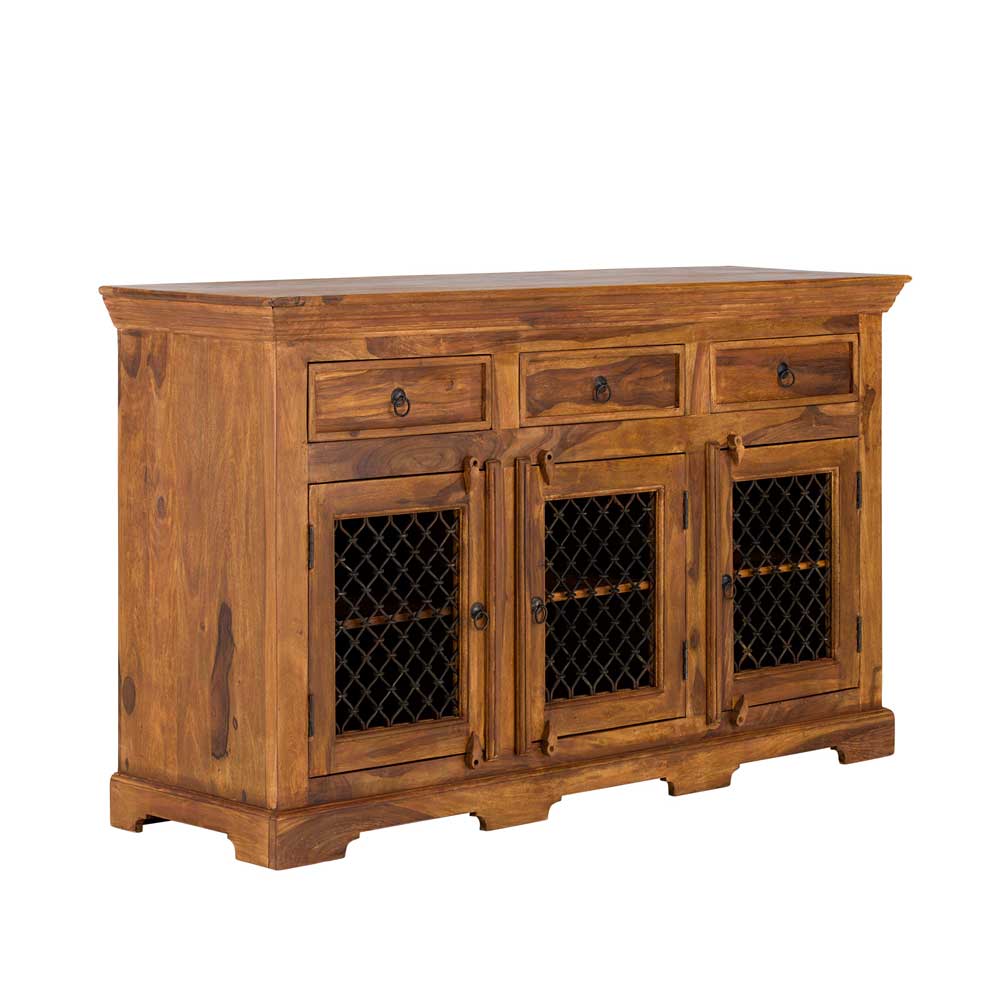 – Sideboard Palisanderfarben und Honigfarben – Wohnzimmerschrank Metall und Palisander Massivholz – Kommode Mexiko Stil – Sidebord Breite: 150 – Küchenkommode Höhe: 90 – Kommode holz Tiefe: 45 – Kommode massivholz Mit drei Schubladen und mit Holzauszug – Wohnzimmer schrank Schrank-Tür: mit Drehtüren – Wohnzimmer kommode 3-türig, Innenaufteilung: mit Einlegeböden – Kommode massiv Ohne Beleuchtung – Kommode echtholz Fertig montierte Anlieferung (eventuell müssen noch Kleinteile angebracht werden) – Echtholz kommode Sockelgestell aus Massivholz – Große kommode Massivholz Oberfläche, Gewachst (flüssigkeitabweisend) und handgearbeitet – Kommode vollholz Metallgriffen – Esszimmer kommode Abgerundete Korpus-Kanten – Massivholzkommode Rechteckige Form – Wohnzimmerkommode Metall Tür – Esszimmerkommode Griff Form: RinggriffInformationen zur Lieferung:Die Zustellung dieses Produktes erfolgt per Spedition. Sie werden vor der Auslieferung durch die ausliefernde Spedition kontaktiert.Terminvereinbarung: Sie werden frühzeitig (ein paar Tage im Voraus) durch die ausliefernde Spedition kontaktiert und Ihnen der Auslieferzeitpunkt mitgeteilt. Die Kontaktaufnahme erfolgt per Telefon. Bei telefonischer Nichterreichbarkeit werden Sie per Postkarte über das Auslieferdatum informiert.Die Lieferung erfolgt aus Kostengründen Frei Bordsteinkante (bis zur ersten verschlossenen Tür). Für den weiteren Transport der Ware sind Sie eigenverantwortlich.Die Auslieferung erfolgt von Montags bis Freitags. Eine Zustellung an Sonn- und Feiertagen ist nicht möglich.