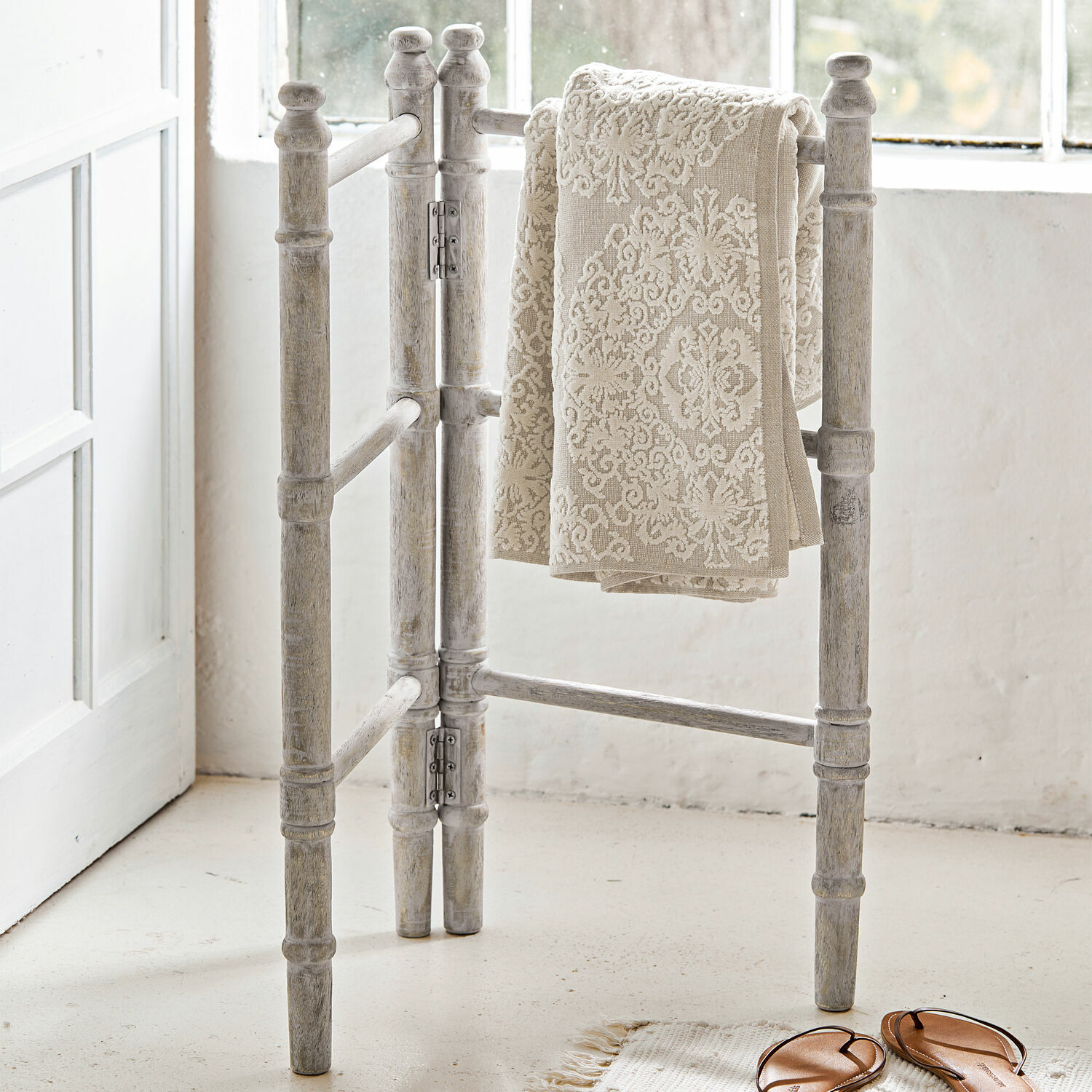 Ein edler Helfer, den Sie in Ihrem schönen Bad bald nicht mehr missen möchten: Dieser edle Handtuchhalter wird Ihnen jedes Mal, wenn Sie Ihr Badezimmer betreten, wundervolle Momente bescheren. Denn seine ästhetische Optik erfreut das Auge immer wieder aufs Neue. Er besteht vollständig aus langlebigem und widerstandsfähigem Mangoholz, das durch seine natürliche Maserung mit den charakteristischen feinen Strukturen fasziniert. Da der Handtuchhalter gedrechselt ist, bekommt er eine zusätzliche, ganz besonders kunstvolle Dimension. Definitiv ein Schmuckstück, das perfekt mit dem Landhausstil harmoniert – und natürlich auch mit einem Auge für Pragmatik gestaltet wurde: Denn der Handtuchhalter ist aufklappbar, sodass Sie ihn an die Gestaltung Ihrer Einrichtung leicht anpassen können. Bei Platzbedarf klappen Sie ihn im Handumdrehen zusammen und können ihn so platzsparend verräumen.