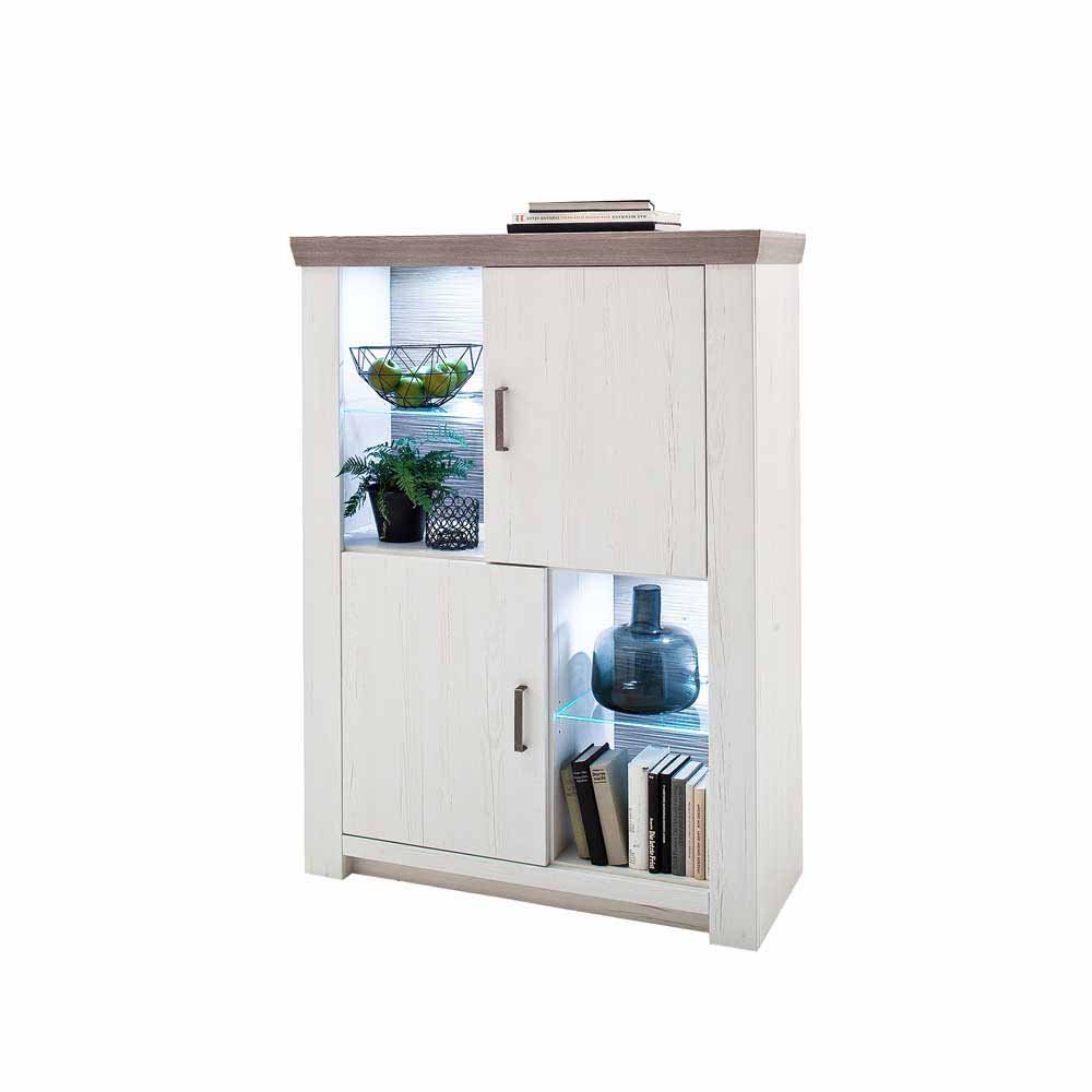 Highboard in Pinie Weiß Eiche LED Beleuchtung