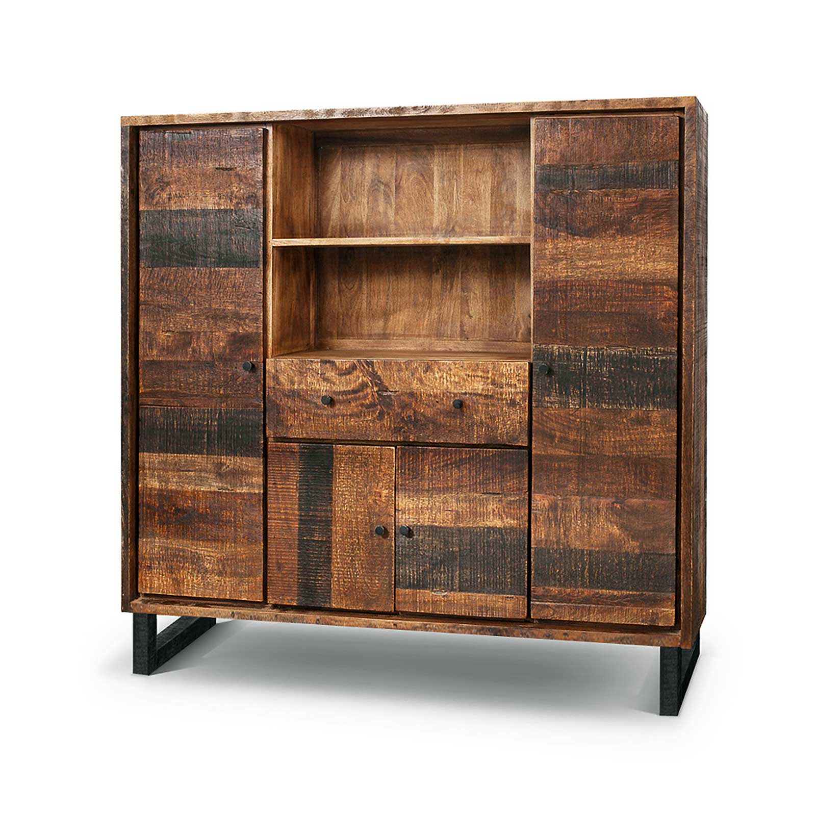 Highboard Kumasi aus Massivholz in Antik Braun 150...