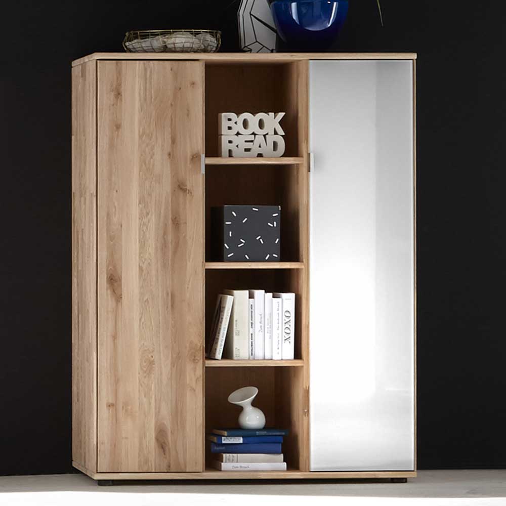 Highboard mit offenen Fächern Wildeiche massiv Weiß
